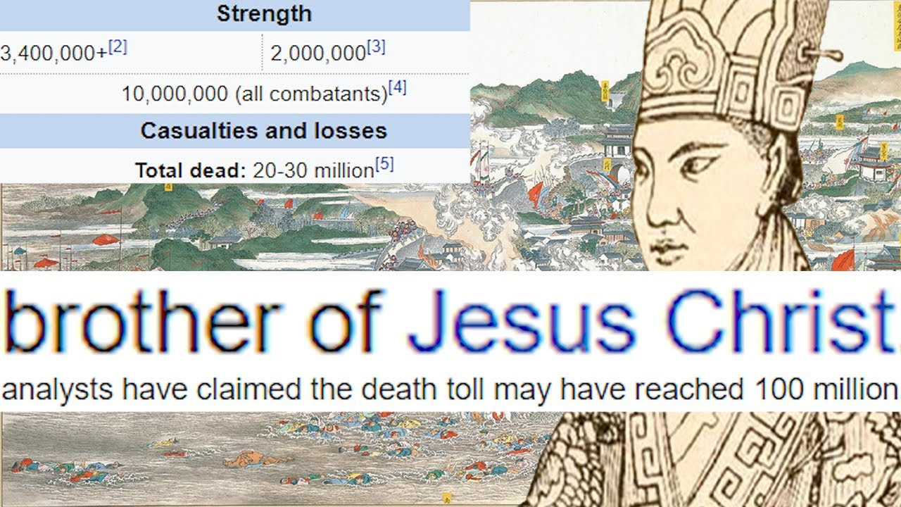 >>1154230 У китайцев древности один из главных ивентов был когда один узкоглазый объявил себя родным братом Иисуса и поднял за собой миллионы-миллиарды на восстание. Там нормальный такой микс и ирл.