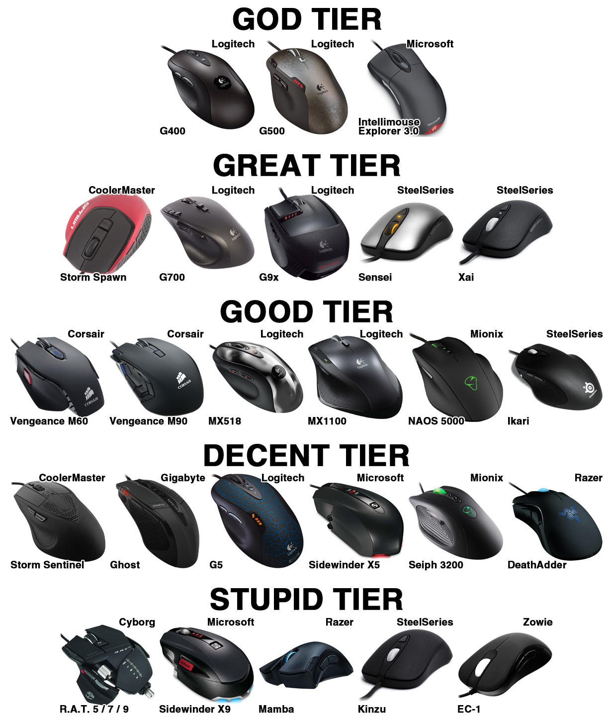 Не понимат. Почему G500 в щит таере? Удобная мышь же. Разве что система грузов нахуй почти не нужна.