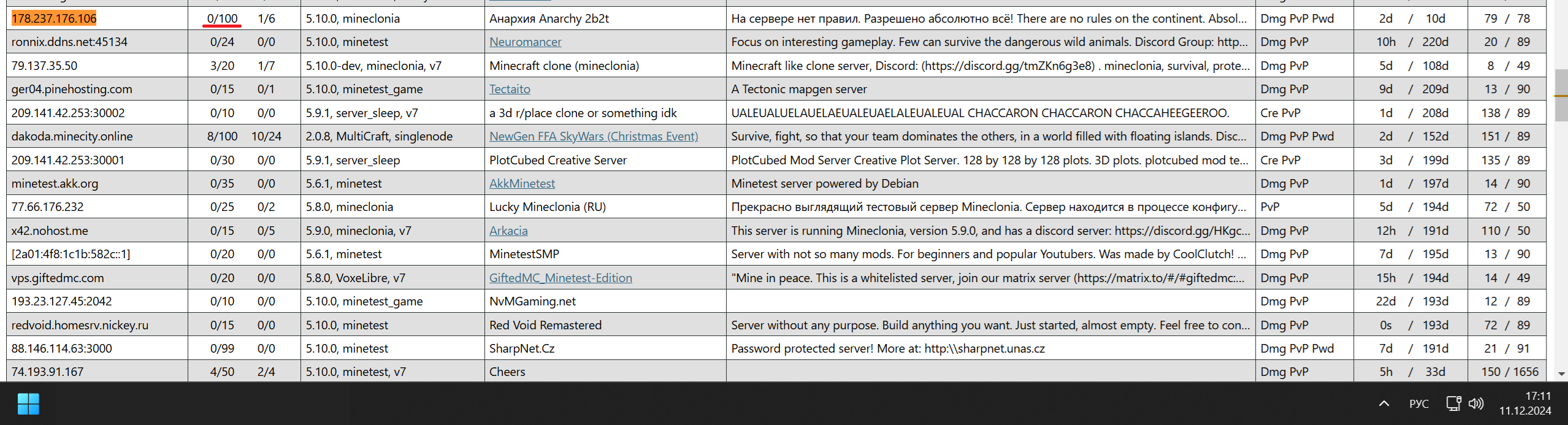 Существует бесплатная игра песочница с открытым исходным кодом и более высокой производительностью чем у Minecraft - Mineclonia на движке Luanti. В качестве социального эксперимента я решил запустить сервер совершенно без правил, приватов и т.п. ip адрес сервера 178.237.176.106 порт 30000, название Анархия Anarchy 2b2t Никаких внутриигровых покупок на сервере нет! Стройте лаг машины, грифирите, читерите(если сможете), ставьте голые скины, рисуйте порнографические арты и т.п. Что бы начать играть нужно скачать движок https://www.luanti.org/ ,а дальше игру https://content.luanti.org/packages/ryvnf/mineclonia/ Игра доступна так же и для мобильных устройств. Сервера общие для всех платформ.