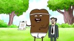 Обосрамс в том, что он получился всем этим - эджлорд с ситкомовским мемом про кофе, как будто персонаж каких-то Времени Приключений, который входит в кадр с чашкой кофе, весь в черном, и раздается закадровый смех.