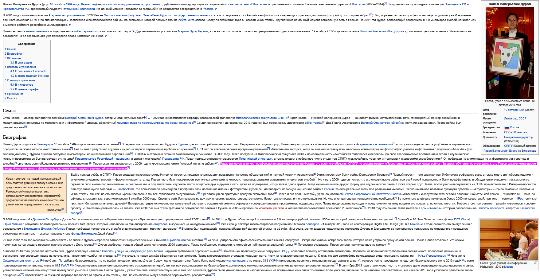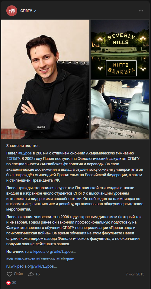 Личная жизнь Павла Дурова.