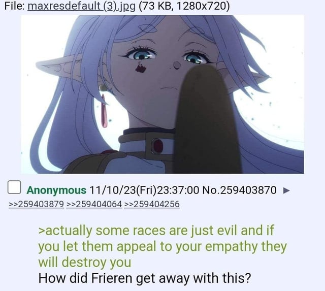 Только что, буквально, Фрирен досмотрел. Хорошо, душевно, особенно серии без мочилова. Конкретно последнюю серию оценивать не буду, оно всё в сумме. Подожду второй сезон теперь.