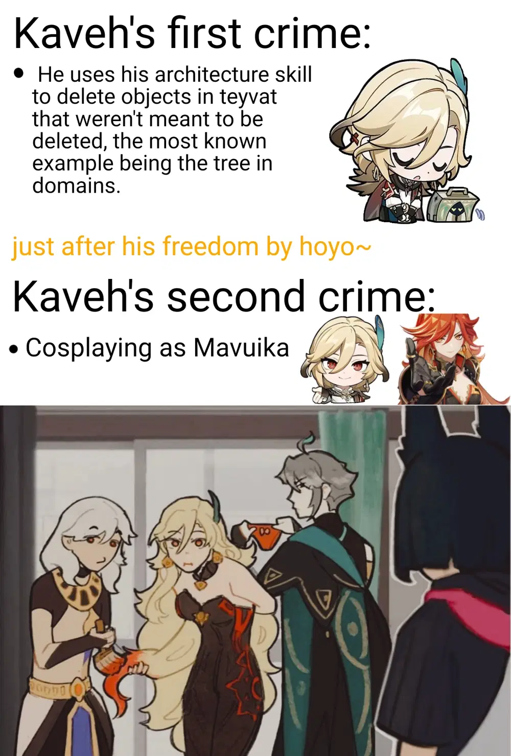 Вот теперь всё встало на свои места, Мавуика притащила мопед из прошлого, в котором были гиганские роботы и прочие важные вещи. А за последние 500 лет Тейват в основном деградировал, хотя Сумеру и Фонтан очевидно показали развитие, в отличии от полной деградации Монда до уровня деревни. Хорошее в этом то что местное шизло успело проткнуться, хотя местное шизло всегда найдёт повод чтобы проткнуться.