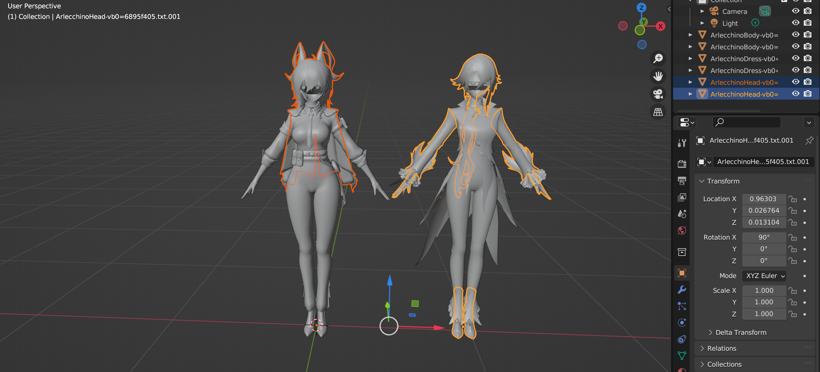 >>4024214 >В третьих нужно правильно экспортировать модель - там куча настроек. С этим есть некоторая проблемка: 1. Экспорт оригинальной модельки Хоровода происходит вообще без каких-либо проблем - через GIMI это делается изи, но тут и не надо никаких танцев с бубном. 2. Проблема в другом - мод который я хочу портировать, в оригинальной GIMI не дает разобрать уже скомпилированные файлы мода. Как пояснили создатель проги, это сделано чтобы не пиздили авторский контент. Но походив по тырнету, я обнаружил что с такой проблемой столкнулся не я один и все же добрые люди сделали свою утилиту, чтобы а) разбить файлы готового мода на исходники и б) импортировать файлы этих исходников в сам блендер. Собственно скрины которые я кидал, как раз импортированный файлы ихсодника - наверное они или в оригинальном виде, без правок склете, либо поломались. В любом случае, как я понял, надо че то со скелетом делать.
