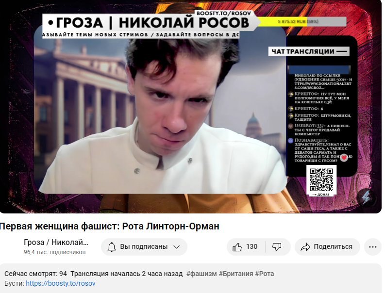 Кстати, еще хочу кое что сказать. Я тот анон, что трясётся на тему того, что Росов опасный фюрер. Вам всем известно, что Коля пересказывает википедию на своих лекциях. Я в принципе ничего такого в этом не нахожу, учитыая, что он хуярит их каждый день, успеть переварить статью из вики и подать её - это труд, хоть и рутинный, но должен быть оплачен. Но есть всё же моменты зашквара, которая меня очень смутили. Во-первых я четко помню, что загуглив какого-то исторического персонажа после его стрима я наткнулся на текст, от и до повторяющий слова Кольки, ну т.е. наоборот Колька повторил текст. И это была даже не вики далеко, а вполне обычный, может даже желтушный ресурс. Причем и структура повествования не была изменена. Возможно это был стрим про Освальда Мосли, я постараюсь найти как время будет. Далее, где-то в марте-апреле у него был стрим про антисаентизм: https://www.youtube.com/watch?v=1WNTiKPa8l0