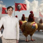 Третья мировая война определит властителя мира. И мы вступим в эту войну под мудрым и сытым руководством. Как любая война, третья мировая начнется в умах - на стримах. Мы будем просить донаты, чтобы стрим сохранился! Мы будем ставить черный экран! Мы будем отправлять миллионы Шульман! Мы будем вставать на колени и унижаться за 50 рублей донатом. Но закончится война — активной, горячей, поджаренной и ароматной фазой. Мы будем штурмовать куро-сёлы и курятники под Техасом. Мы совершим сотни и тысячи десантных операций по всей США, захватываю одну точку КФС за другой. Мы мобилизуем и радикализируем других любителей курочек - чернокожее население США. Они встанут на нашу сторону и развяжут войну изнутри США. Мы будем захватывать агрокомплексы! Мы будем выпускать агитки с полковником Сандерсниковым! Мы будем выпускать ААА-игры по "Ну, погоди!" с ловлей куриных яиц! Мы будем жарить, жарить, жарить - 6 миллионов курочек будет отжарено и съедено! Такова программа Николая Росова, будущего диктатора куриной России.
