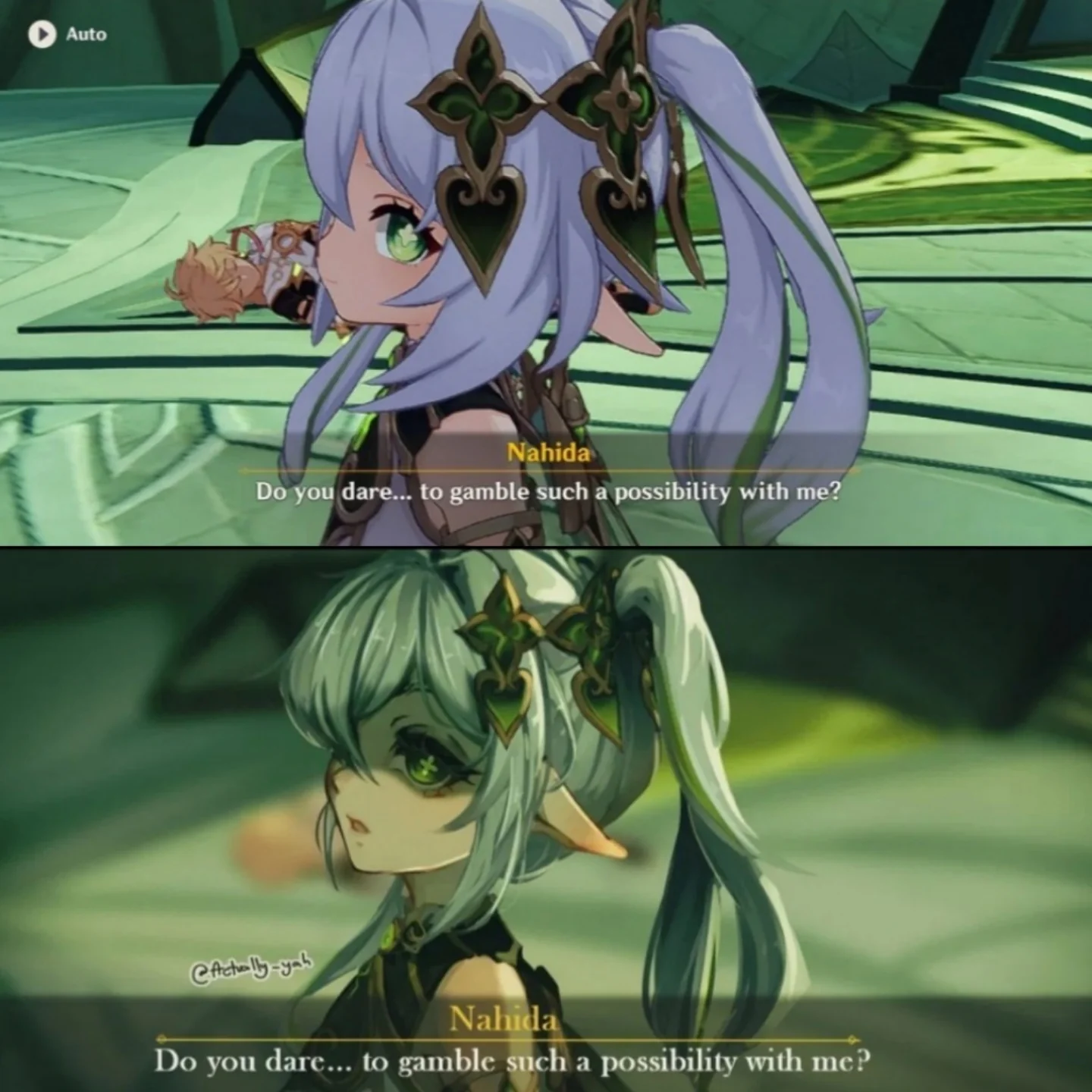 >Сумеру же имеет неплохую сюжетку в тропиках Только первая половина ок, даже меньше половины (после Сабзеруса буквально), потом всё катится в пизду на быстрых скоростях. Часть персонажей слабо прописаны, даже по меркам Хоровода. Потом идет огромный кусок лотка шакала, который без карты было невозможно нормально исследовать, потому что лока была будто накопипащена. Потом ещё и приправили всё наидушнейшими пари, которые были вписаны сбоку в лор и от которого даже паймоны бухтели. Хз, ты наверное там скипаешь большую часть текстов, иначе у меня нет объяснений.