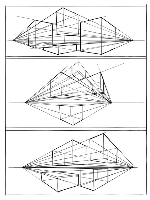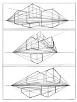 Rough perspective exerc пик 1. требует от тебя посмотреть, насколько сильно ты проебался с точкой схода, продолжив свои сходящиеся грани к горизонту как надо, а не к центральной точке схода как сделал ты. В уроке этой ошибке посвящен целый абзац.
