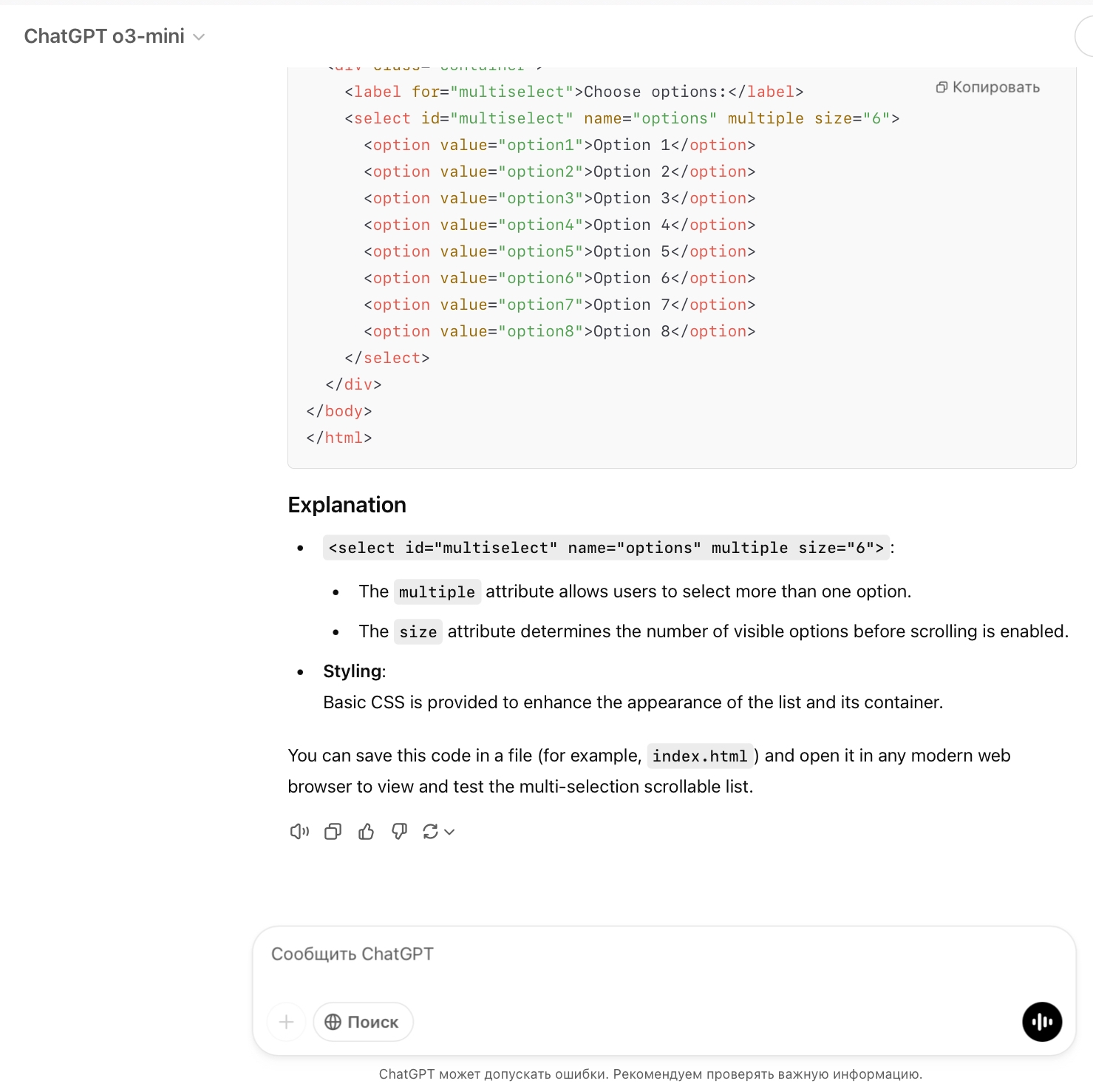 - ChatGPT o3-mini сделал что просили, максимально по спартански.