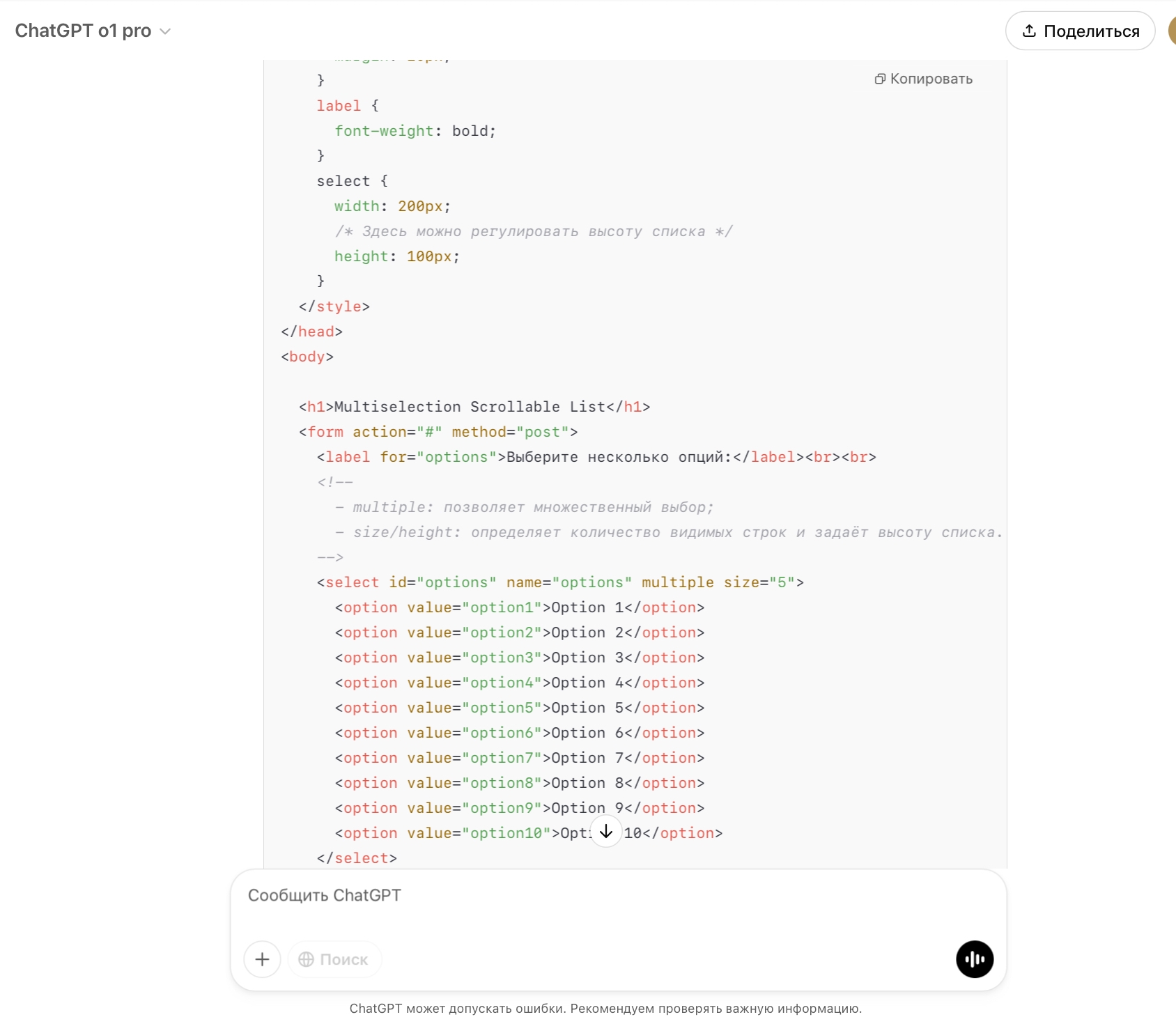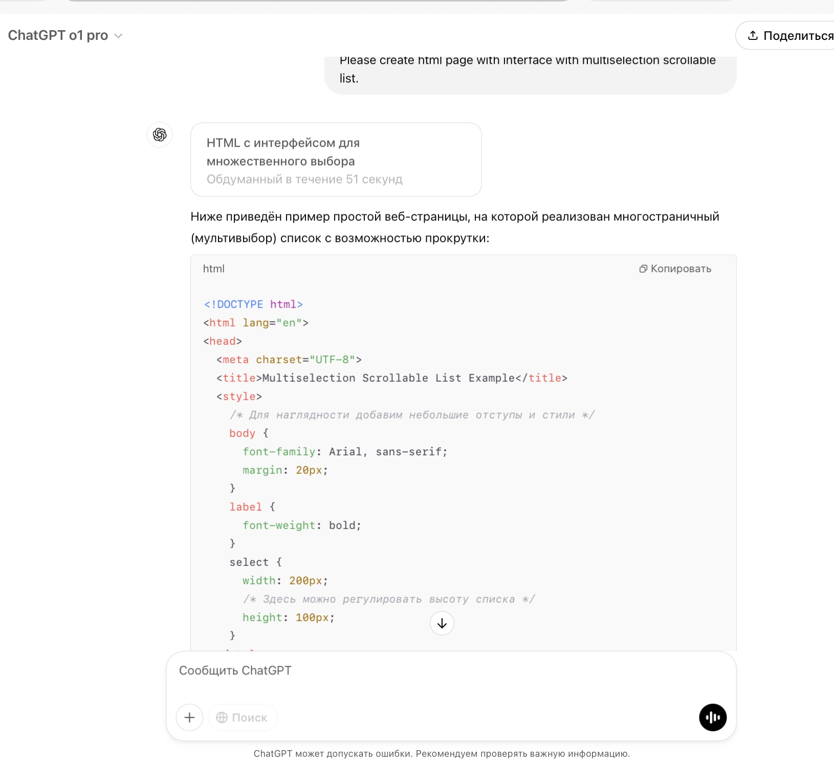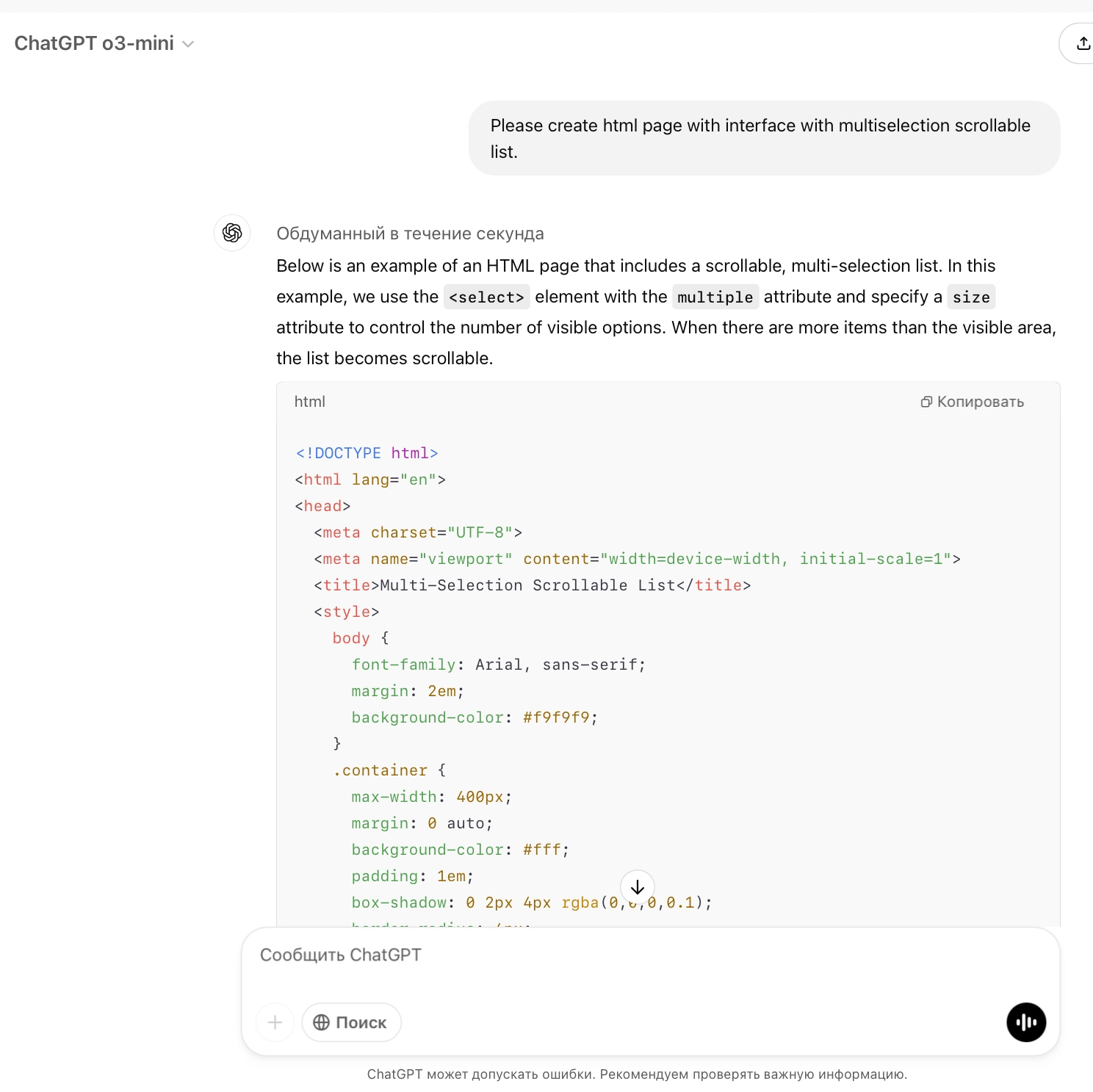 Вот промт: Please create html page with interface with multiselection scrollable list.
