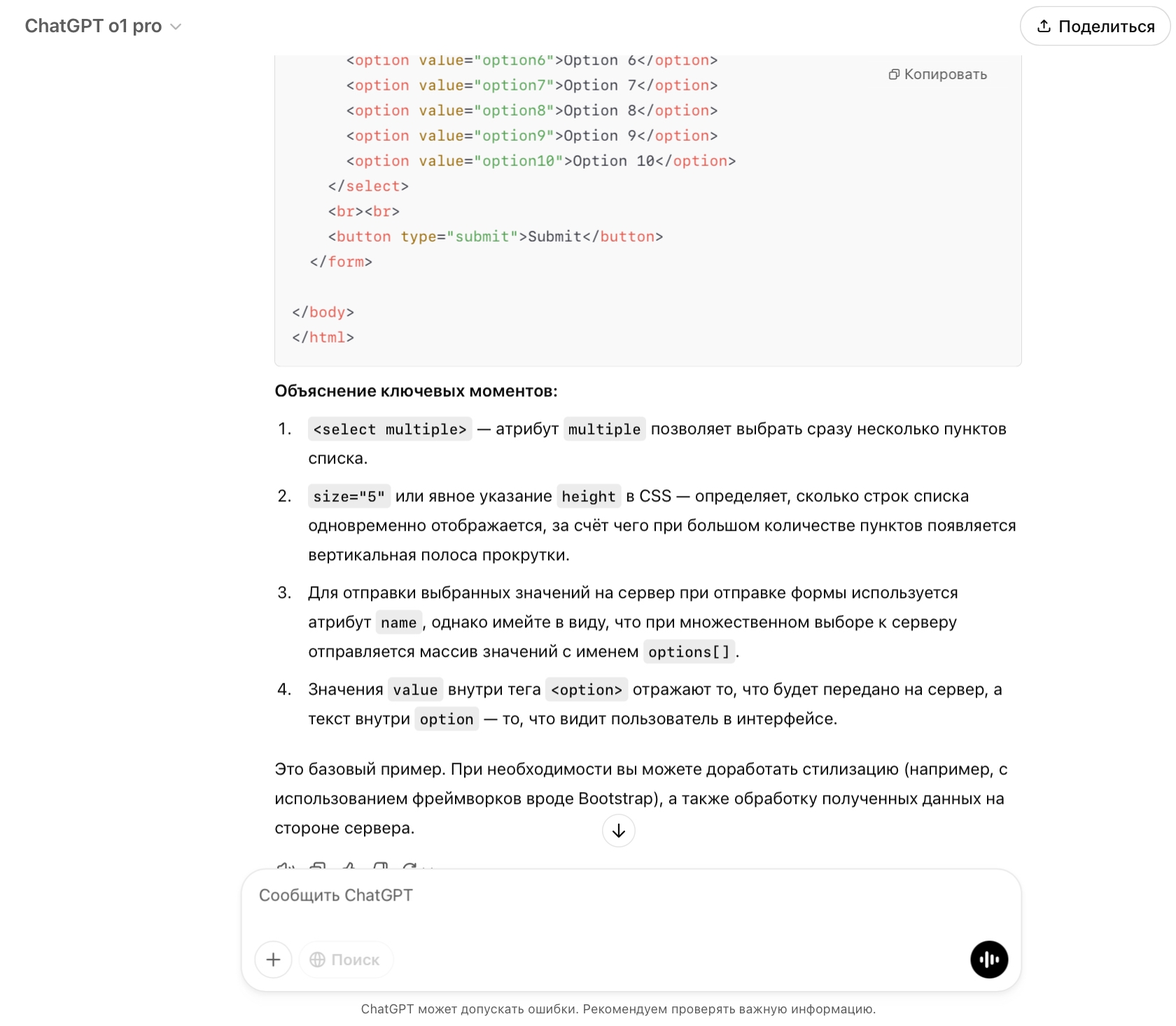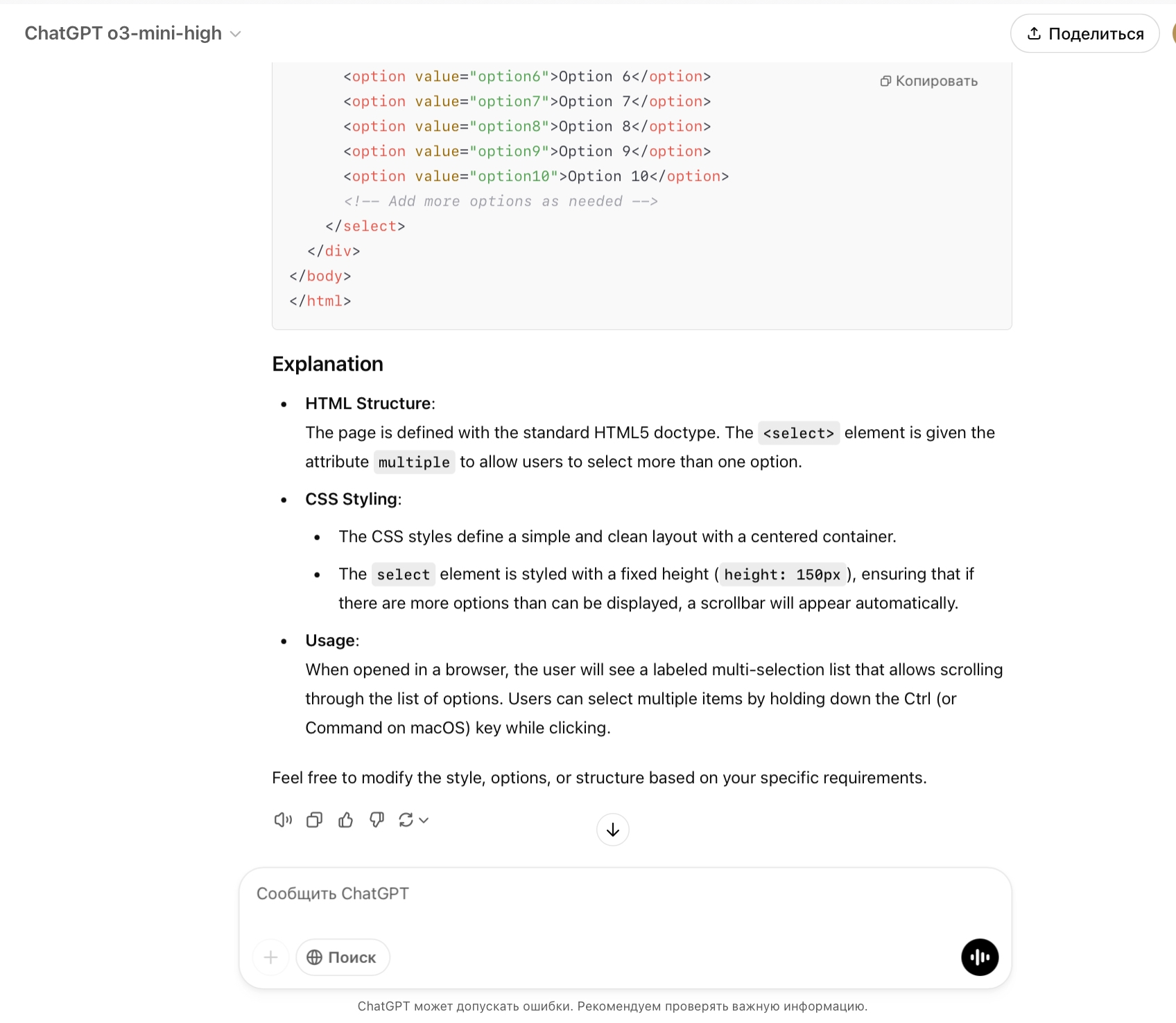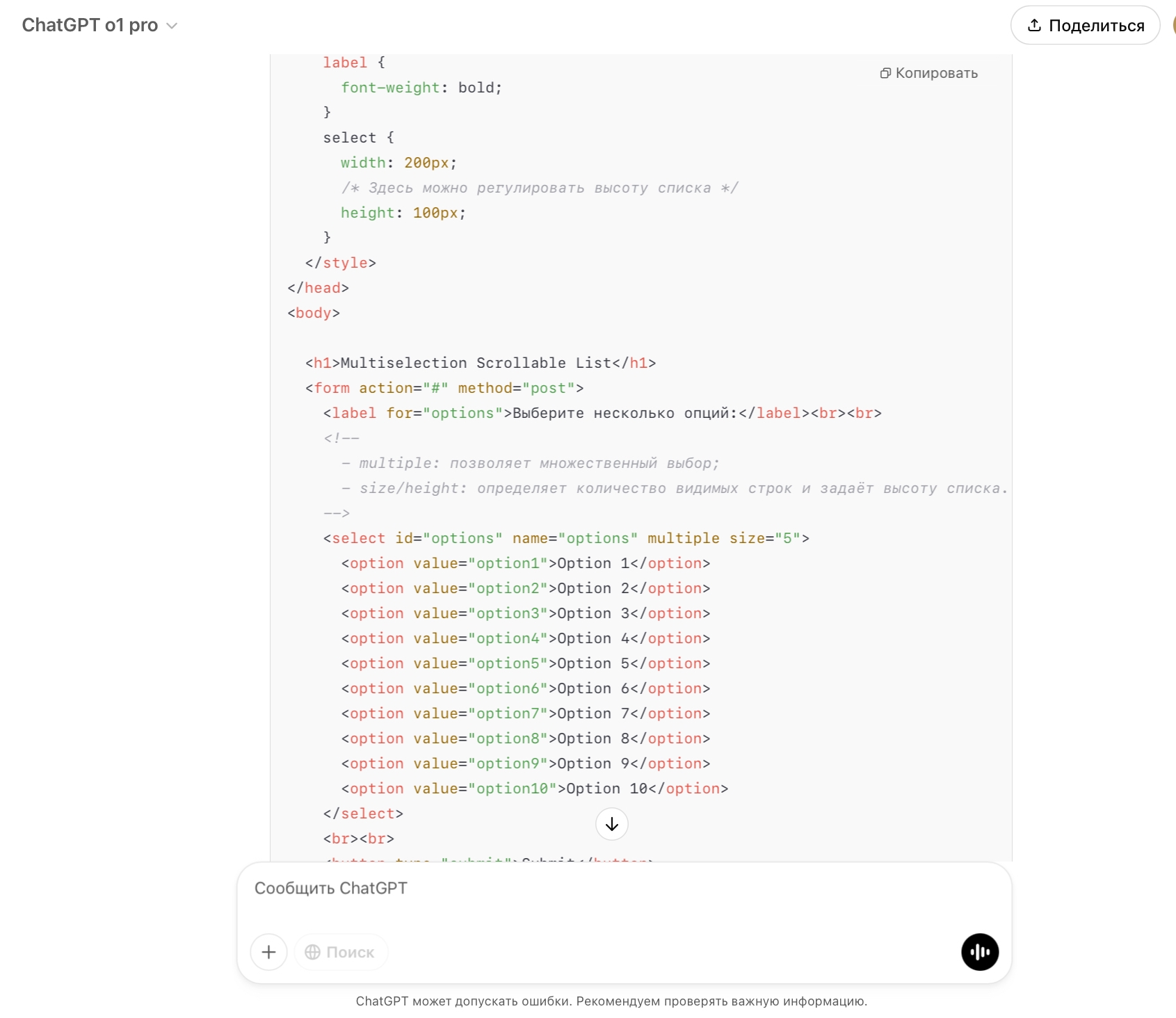 Вот промт: Please create html page with interface with multiselection scrollable list.