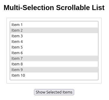 <title>Multi-Selection Scrollable List</title>