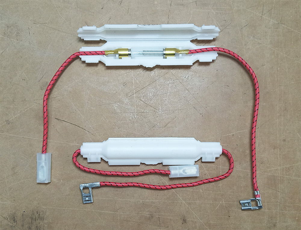 >>7692197 Ну значит магнетрону пизда. Тот предохранитель маленький, что ты выше скидывал, он на всю микроволновку. Без него она не включится вообще. Там есть еще второй, на магнетрон, как на картинке. Он если сгорел, то внутри пустой будет. Но раз магнетрон греется, значит предохранитель цел и сам магнетрон скорее всего наебнулся. Найди того, кто его прозвонить сможет. Так будет сразу понятно.