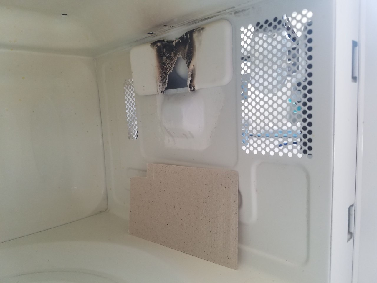 В микроволновке пробило колпачок магнетрона и погорела панелька.