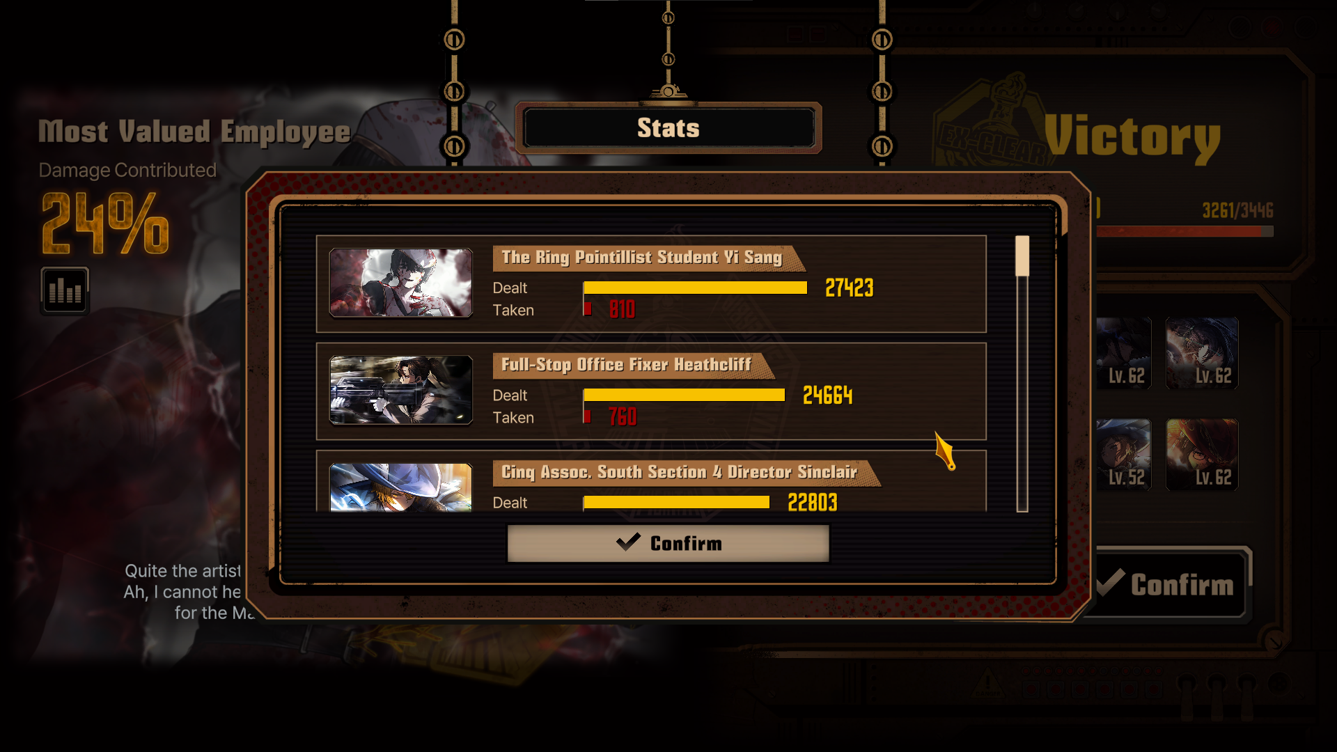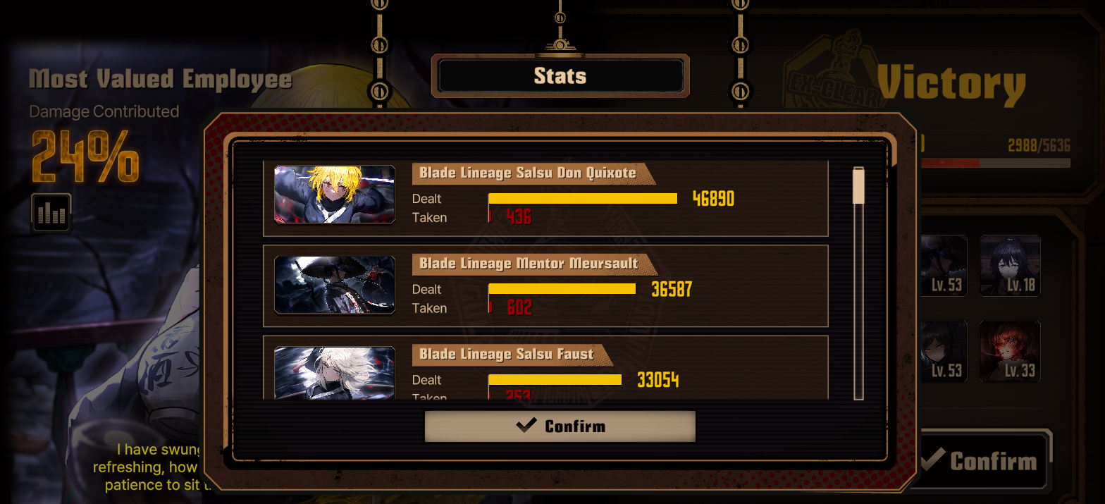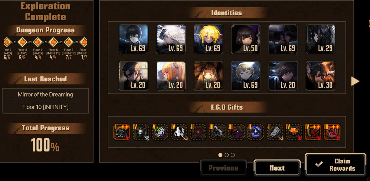 Наконец-то уделил время бесконечному данжу после того, чтобы забрать ачивку за десятый этаж - в прошлый раз я выбирал все гифты на отъебись, не пользовался фьюженом за исключением слива дубликатов, в качестве команды использовал личный гарем деплоил только тяночек и всё в таком духе... Тогда винрейтом я дошёл до середины седьмого данжа и тогда застрял. Сейчас взял фулл-пати курокумовцев, подключая мозги при выборе гифтов и менеджил очерёдность персонажей. В итоге всё было зачищенно довольно просто и даже упоминаемый в треде эгоспам не понадобился - на десятом этаже синнеры выроливали неебические числа и клешелись так, словно я в обычную люкскавацию зашёл пофармить. Все эти десятки тысяч хп, неебический урон... Оказалось нихуя и не страшно. Какой смысл если игра позволяет тебе так зафармиться, что тебе под конецв шопе скупать нехуй? Хорошо что я пуантилистов/вампиров/обладателей мира кала не взял - это был бы оверкилл.