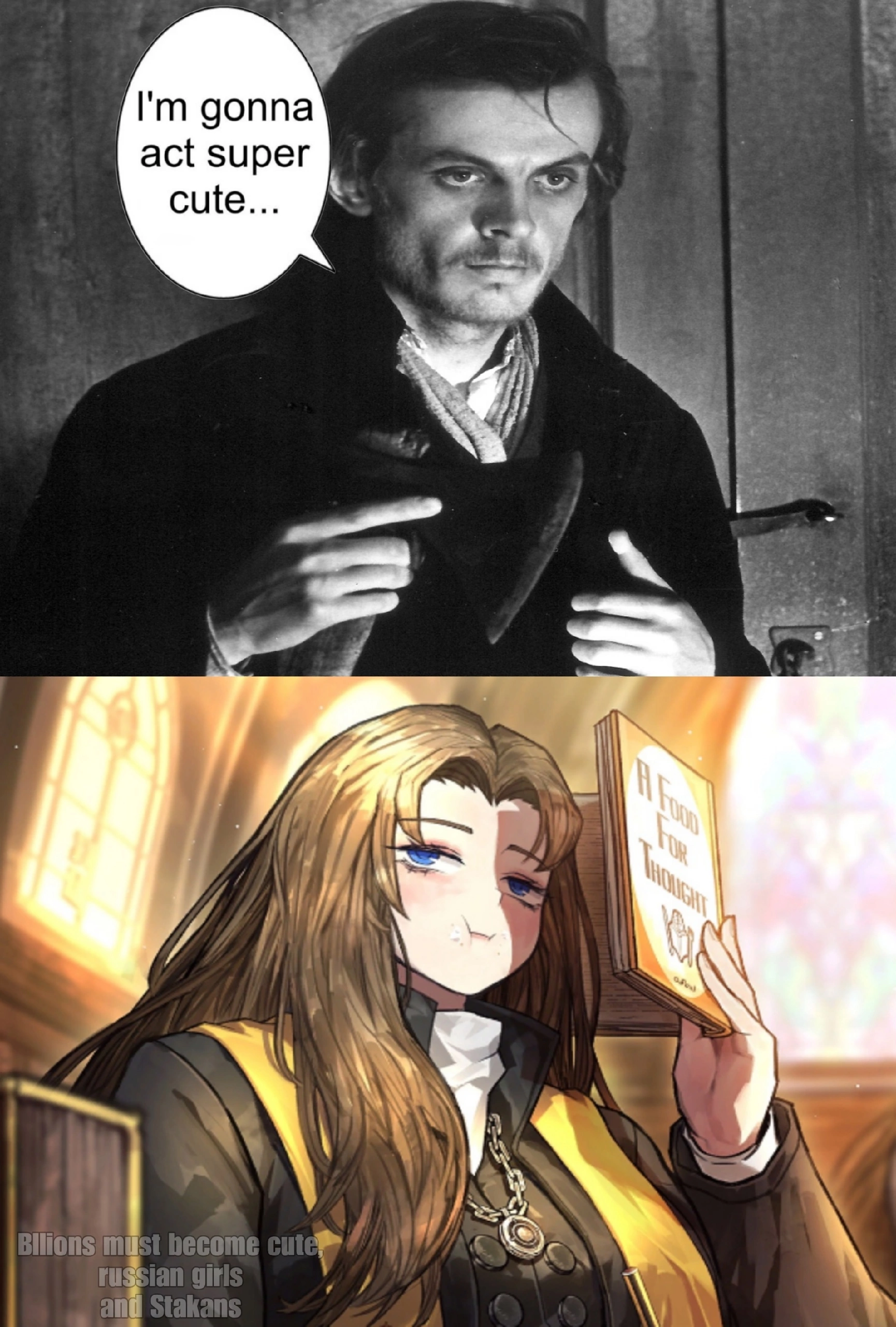 >>4298935 >Ну ты и говноед братишка. Пять лет на филфаке сделали из меня говноеда, да. >проклятие женских глав Мне теперь интересно, в чем это выражается. У Родиона глава говно, но я списал на то, что это все еще самый старт игры и местный писака просто обосрался, как это обычно бывает во всех гачах с упором на сюжет (передаю пламенный привет ФГО, где первые пять глав ровно нихуя интересного не происходит, арки туда же). Ладно, про Ишмаэль мнения даже тут у анонов различаются, ставлю на то, что тут уже из личных предпочтений: кто-то НЫТЬЕ не переносит на дух, кто-то говорит "заебись, стекло" и просит еще. Не знаю, что там в главе Дон Кихота происходит, но если без спойлеров описать да похуй, можно с ними, то в чем "проклятие" выражается? >>4298975 Такая же ебанина в ОРИГИНАЛЕ происходит, тут просто забей. Еще один момент, автор "Грозового перевала" - женщина, так что мифическое проклятье женской главы отчасти распространяется на все это.