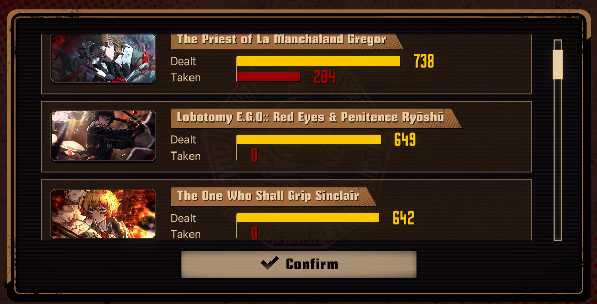 Я, как человек, надолго забрасывавший игру и вернувшийся лишь недавно, ещё не имею хороших новых ИД - все мои персы ещё с ишмальского канта, а на прокачку новых ид ресурсов нет. Каков шанс, что группы блядовиков (курокумо) и группы "то, что осталось" (сэнки, родословная клинка и пара варп-уборщков) будет досаточно? Или джихуй к хуям крипнул всё старое говно до уровня калек и мне надо скопить шарды на какие-нибудь хорошие ЭГО/личности из актуального магазина? МД как-то не справляется с тем, чтобы я мог оценить уровень релевантности своей партии. С нынешней РР проблем не было - всё было пройдено за один единственный заход почти без ретраев, но там вроде и на боссах акцента не было - грешники против грешников, в отличие от трейлера новой рельсы, где синнеров унижали как сучек.