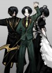 >>4348229 Куро выглядят пиздато и в едином стиле - парни в строгих костюмчиках рубашка/брючки, а дамы в кимоно. Ишма в "парадном" потому что она чаще ебалом светит и бумажки перебирает, чем ебёт на поле боя, а Рёшу - вакашу, так что ей и штанцы под кимоно выдали, чтобы людей резать направо и налево удобно было. "Мешанину из 20 разных костюмчиков" ты сам себе выдумал: Гриша, цыган, культиватор - все носят рубашечку с брючками. При этом каждый выглядит индивидуально и носит на себе соответствующую символику. Даже оружие у всех разное, но заметно, что произведено в одной мастерской - помимо того, что паттерны облаков разные, капитанские мечи отличаются от мечей вакашу цветом.