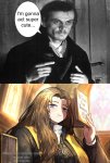 Ну это так, самый минимум того, на чем стоит останавливаться при обсуждении говноглавы. Так там конечно проебов во всех отношениях бесконечное количество: начиная от зафелйенной кэтчфразы ЭТО ТВОЯ ВИНА ИШМАЭЛЬ которая ровным счетом нихуя не значит ни в каком контексте и введена чисто чтобы продавать футболки, и заканчивая абсолютно проебанным лором палификации и пиратами на деревянных кораблях с парусами. Короче то, что ты спокойно сожрал волосяные купоны, психотерапию с проговариванием психотравм, шиппер-байты ради нихуя и проговаривание примитивной морали на уровне детского садика с "ну короче надо все самому решать... да" – это просто странно. В канто 5 Джихуй буквально насрал на всех уровнях: у него мотивации персонажей ни с чем никогда не сходятся и меняются по 5 раз на дню, персонажи ведут себя как дебилы, критически важные для сеттинга моменты нихуя не объясняются, тогда как тонны текста тратятся на разъяснение шутки про волосяные купоны и велотренажеры в лодке все же помнять этот невероятно смешной из начала главы? Я помню. Грешники тащатся на заброшенный корабль вопреки их миссии просто по приколу, драма с убийством/неубийством пиратской шлюхи не значит ровным счетом нихуя, грешники чуть не убивают единственного человека который их может воскрешать из-за таланта убеждения Ахаб - и так далее, и так далее, и так далее. Ну а так да, впечатления положительные, вырезать 90% главы и заменить на что-то вменяемое и написанное не шизофреником - и вообще заебись будет.