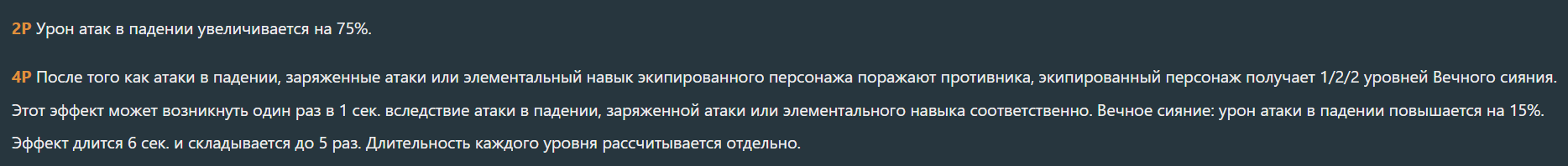 >>4297188 Если у тебя на шилонен стоит новый натлан сет артефактов, то самой шилонен, примерно по принципу казухи, нужно "раздуть" нужный элемент, чтобы эффект от сета артефактов дал бонус 40 гидро урона (на примере данной пачки). Для меня самой оптимальной ротацией здесь бы являлась такая: элем навык Невилетта, ульта и елем навык Фурины, (по желанию ульта шилонен) элем навык Шилонен, элем навык Казаха, заряженная атака Невиллета, ульта невиллета, повторять до победы