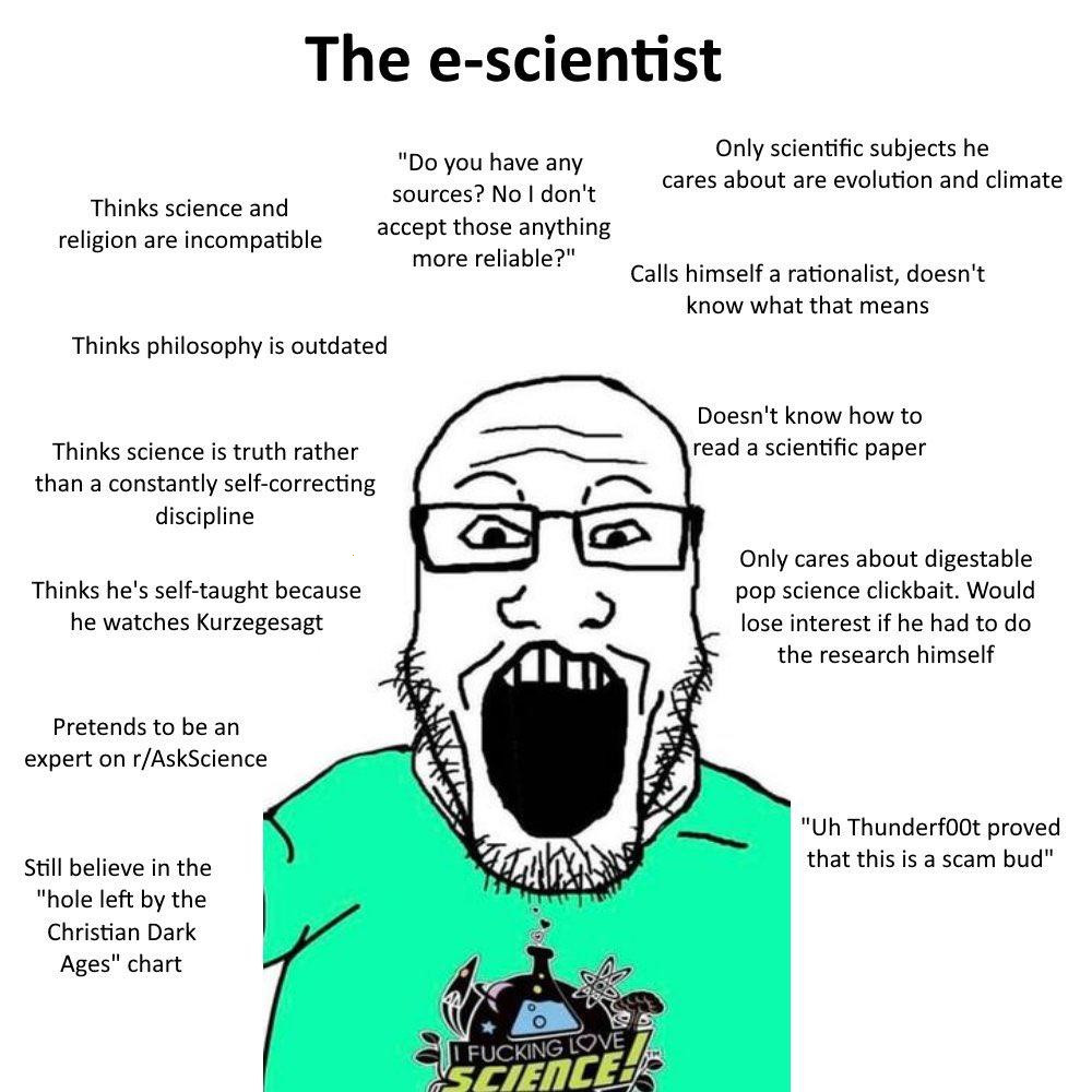 Сегодня человек должен быть потребителем, для этого его нужно отвратить от праведности, а значит и от религии тоже хуйня кстати, потому что праведника не заставишь въёбывать 5\2 ради покупки нового айфона и сумки гесс, они ему на хуй даром не нужны, ибо праведник априори аскет. А аскет это хуёвый потребитель. А хуёвый потребители системе не нужны. Поэтому не должно быть никакого знания кроме "научного", основанного на отрицании религиозной веры и праведности.