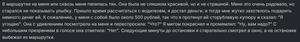 Но что я такого сделал ей, что она обиделась? Она же должна понимать, что быть такой навязчивой и стараться решать свои проблемы за счёт других - хуйня.