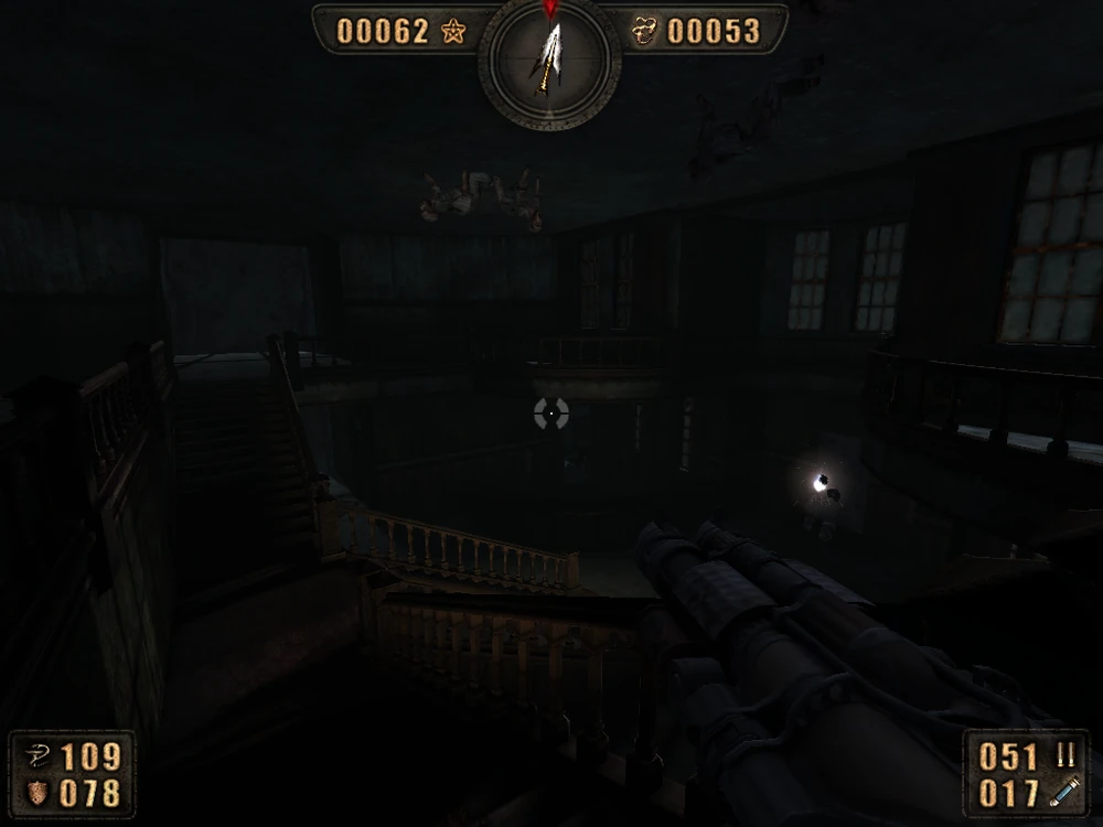 Локация в игре которая меня до ужаса пугала - "дом охотника" из игры Дарквуд. Там саундтрек как я помню отдельно написан для этой локации и он прям жуткий получился, особенно с этими поскрипываниями старого уже разрушающегося дома... И самое забавное - там нет ни единого скримера и врага. Тупо забегаешь забрать что-то (уже не помню) и выходишь. Но я нигде в этой игре так не срал и не стремился как можно быстрее ливнуть, как в доме охотника