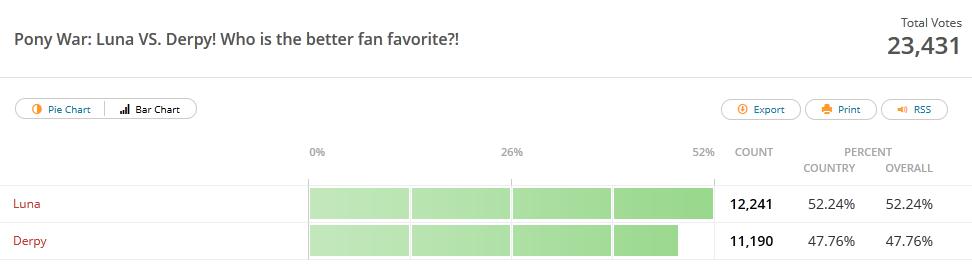 В абсолютно любом голосовании на моей памяти Луна обгоняла Дерпи. В абсолютно любом голосовании РД обгоняла как Дерпи так и Луну. Теперь дай мне хоть одно вменяемое объяснение, почему Дерпи один на один должна обогнать РД? "Это же фоннаты" - невменяемое объяснение, сразу говорю.