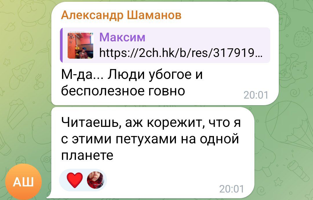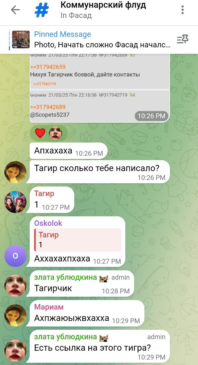 устал пойду спать мимо анон снесший им телегу писал про законы и ук но педики не надейтесь, завтра нотариально заверю скрины и пойду на петровку 38 писать за пропаганду лгбт + ваххабисткие идеи вашего тагирчика.