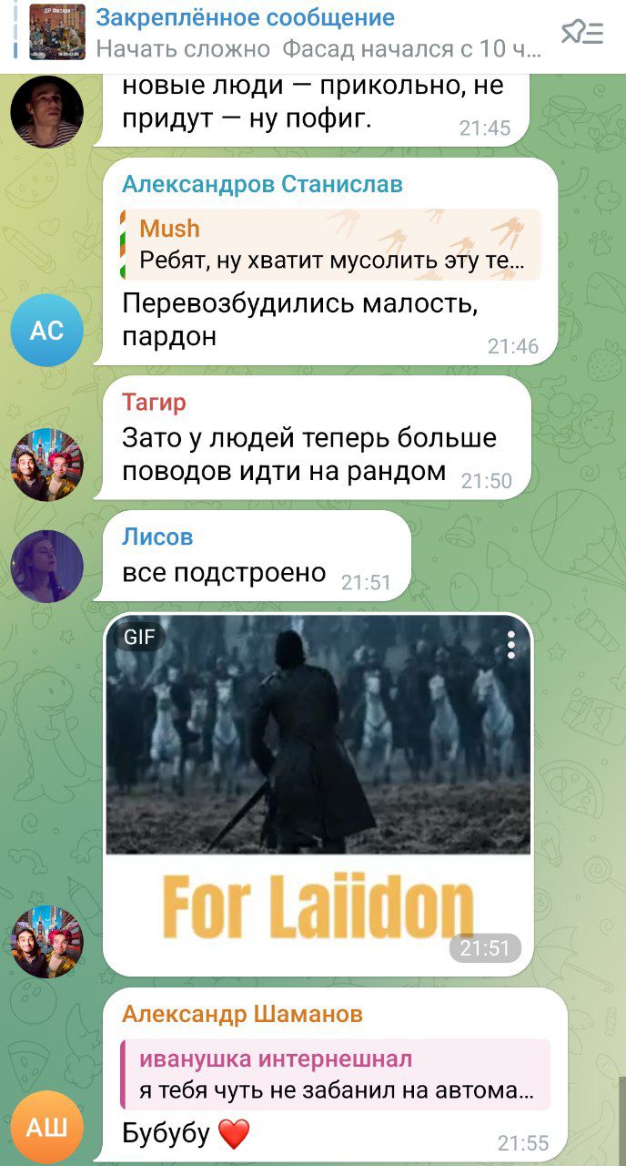 По итогам первого треда был окуклен чат