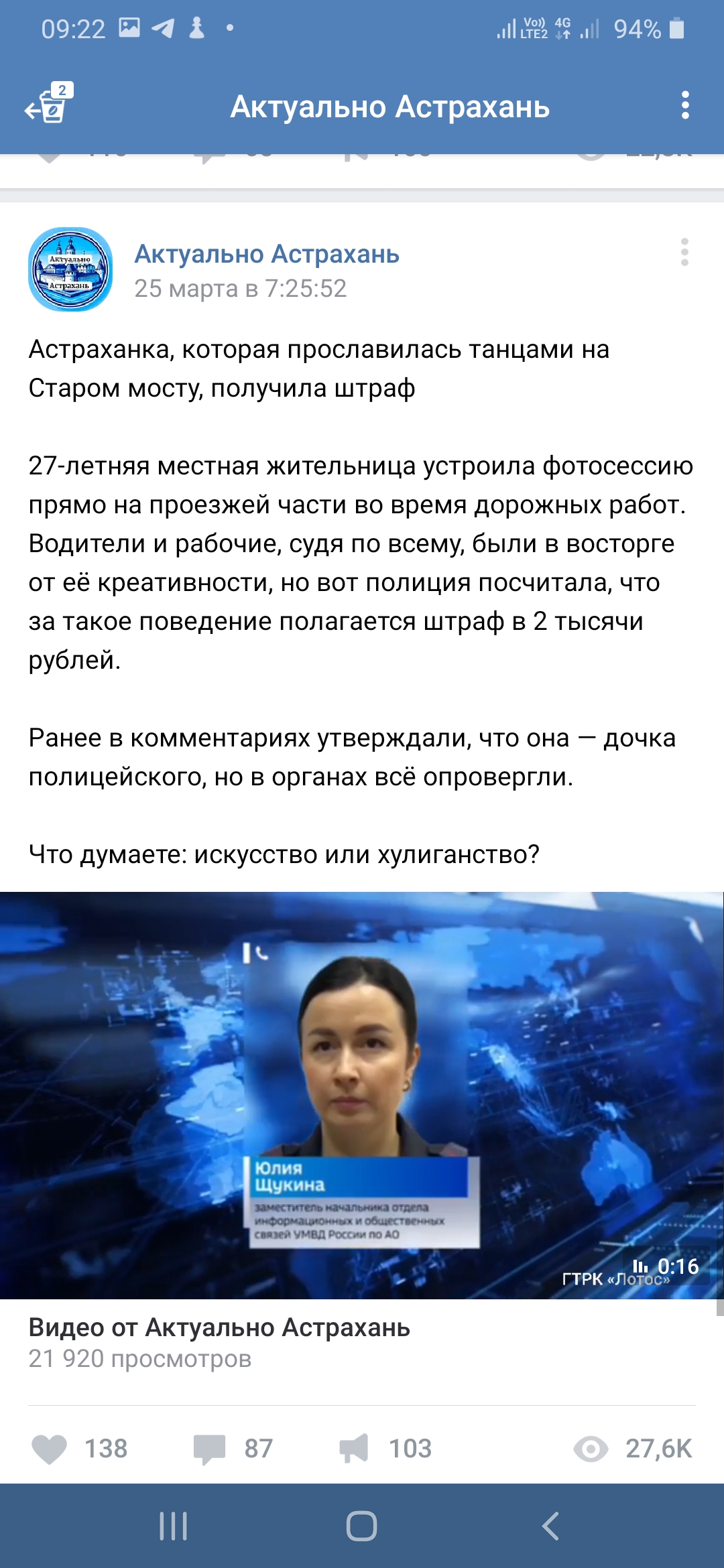 Спустя всего несколько часов после «танцев на мосту» в сети появилось видео, которое удивило многих. Астраханцы увидели ролик с извинениями от мастера участка, руководившего работами на мосту. Этот факт вызвал недоумение, поскольку обычно в подобных ситуациях с извинениями выступают лица, совершившие правонарушение, а не свидетели бесстыдного поведения молодой женщины с низкой социальной ответственностью находившаяся вероятно под веществами.