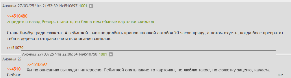 >>4504328 Я про предупреждения при заходе на уровень. Впрочем, я все равно по итогу все прошел 40-45. Качать такую толпу до 50 долго. Да и не настолько сложно проходить недокачанными.