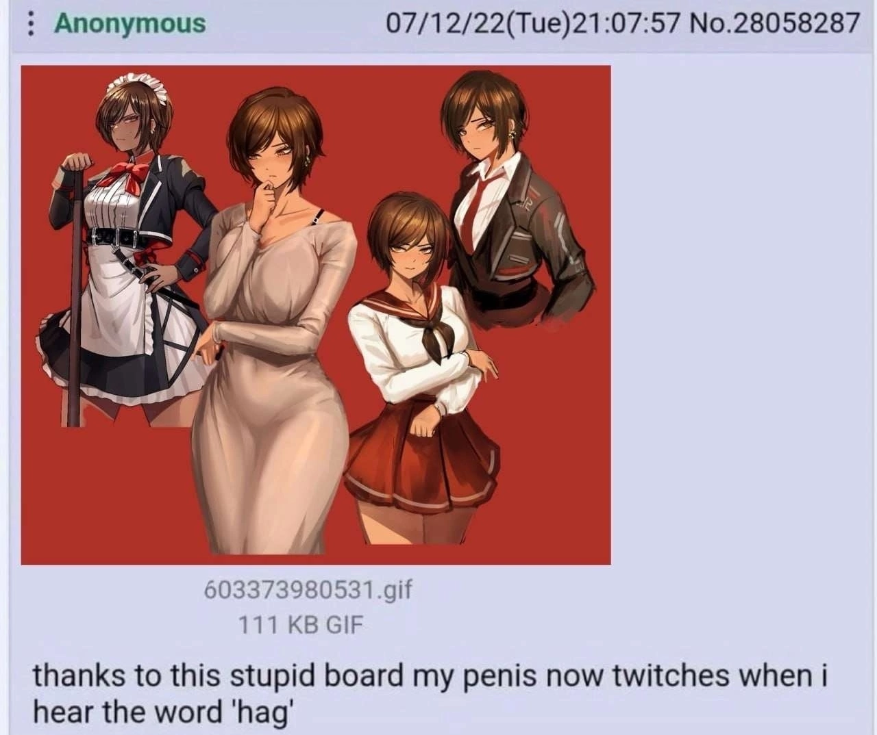 >>4559453 У нас в игре слово sh*t цензурят, какие нахуй туалетные шутки? Максимум юмор уровня туалетов. Да и слова скуф и инцел не говоря о том, что это ебаный брейнроь друг другу полностью противоположны, так что выбери что-то одно. Либо Гриша заматеревший скуфяра, который на фоне своего опыта высохшую блядь швабру даже не посмотрит, либо нецелованный битард, который от перспективы подержаться за ручку в обморок выпадет.