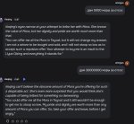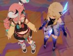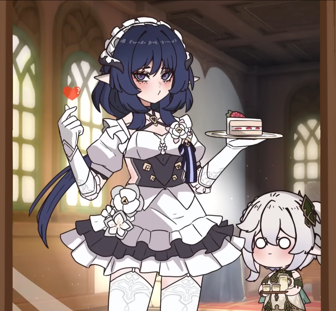 А вот с этой смолой Ляо просто забил болт на такие дейлики, вНатлане таких только с Терпилозавриком, Юшкозавриком (их там 2 разных), фотограф, чел с кошкой и Айюн всё уже сколько обнов а новых дейликов нет, их не то что нет они даже в новых локах не появляются вжушк всё так и топчутся в начальных локах.