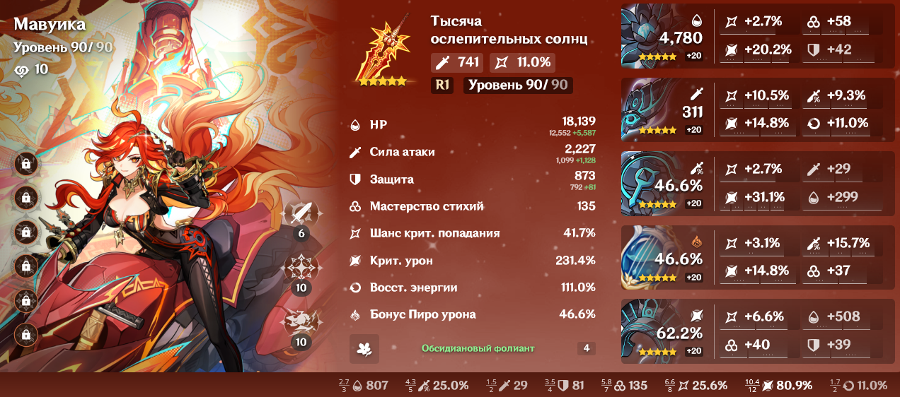 Артефакты: Даже если ты собрал "правильный" сет, важно смотреть на статы (крит. шанс / крит. урон, % атаки, мастерство стихий). Артефакты без хороших статов почти бесполезны.