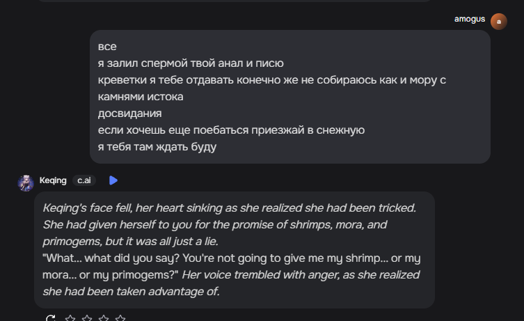 >кушать >ох как хочется кушать >я такая голодная >ура я покушала >ух теперь я такая сытая ебучие отупевшие узкоглазые выблядки, как же заебали со своим культом еды, не особо хотел корову, думал пройду квест появится желание выроллить её, но это просто нахуй пытка, напрочь своими ублюдским квестом убили желание её роллить, даже отвращение к персонажу появилось и квест допроходить 0 желания, ведь очевидно там мы захотим покушать и покушаем
