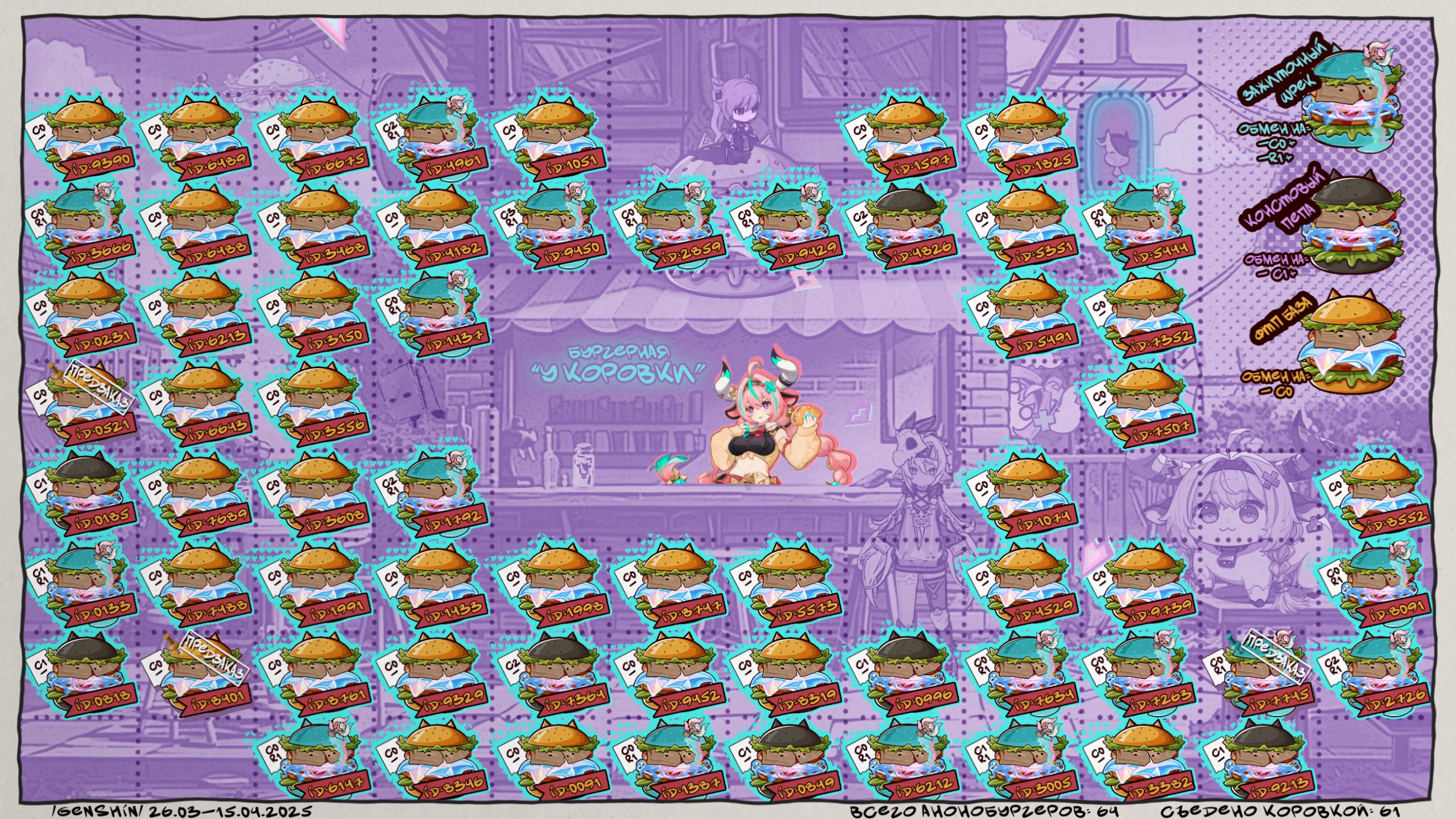 последний день баннера коровки отметка: последние 4(не меньше) цифры id + количество конст/рефайнов которые выкрутили + скрин завтра будет финальная версия алтаря
