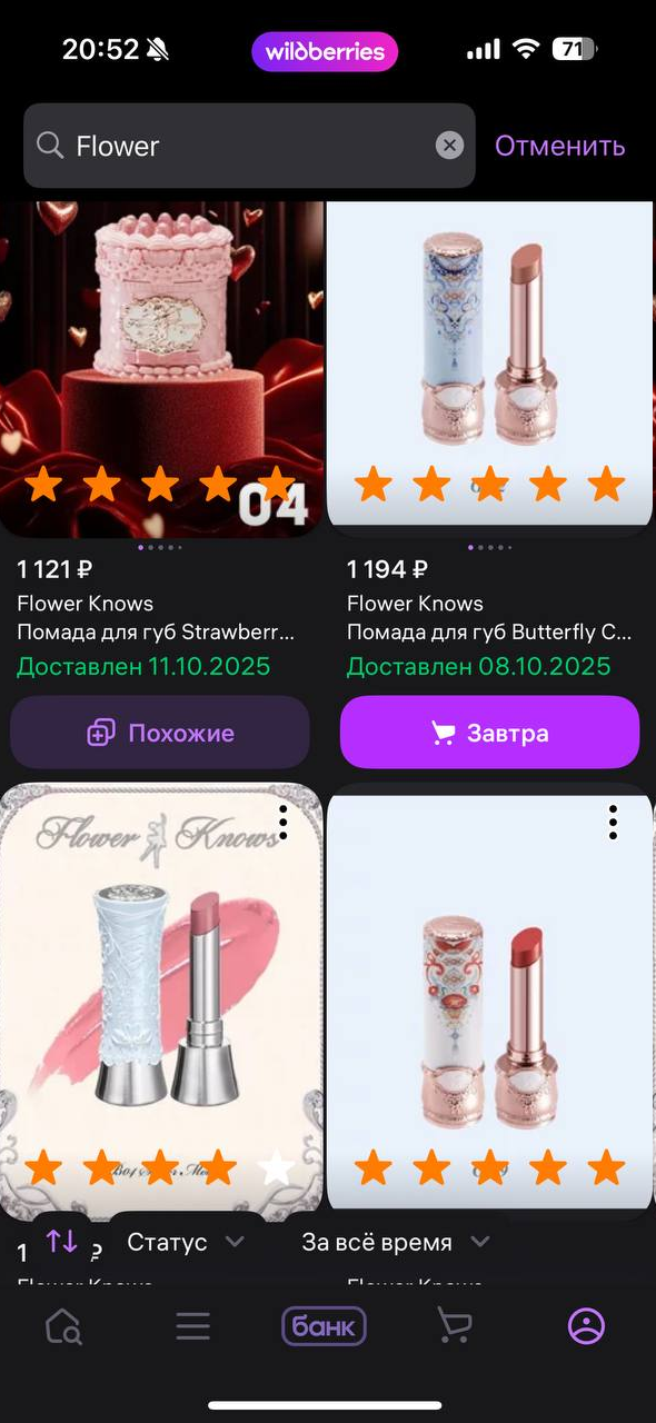 Я ничего не купила, к сожалению, хуй забила в этом году