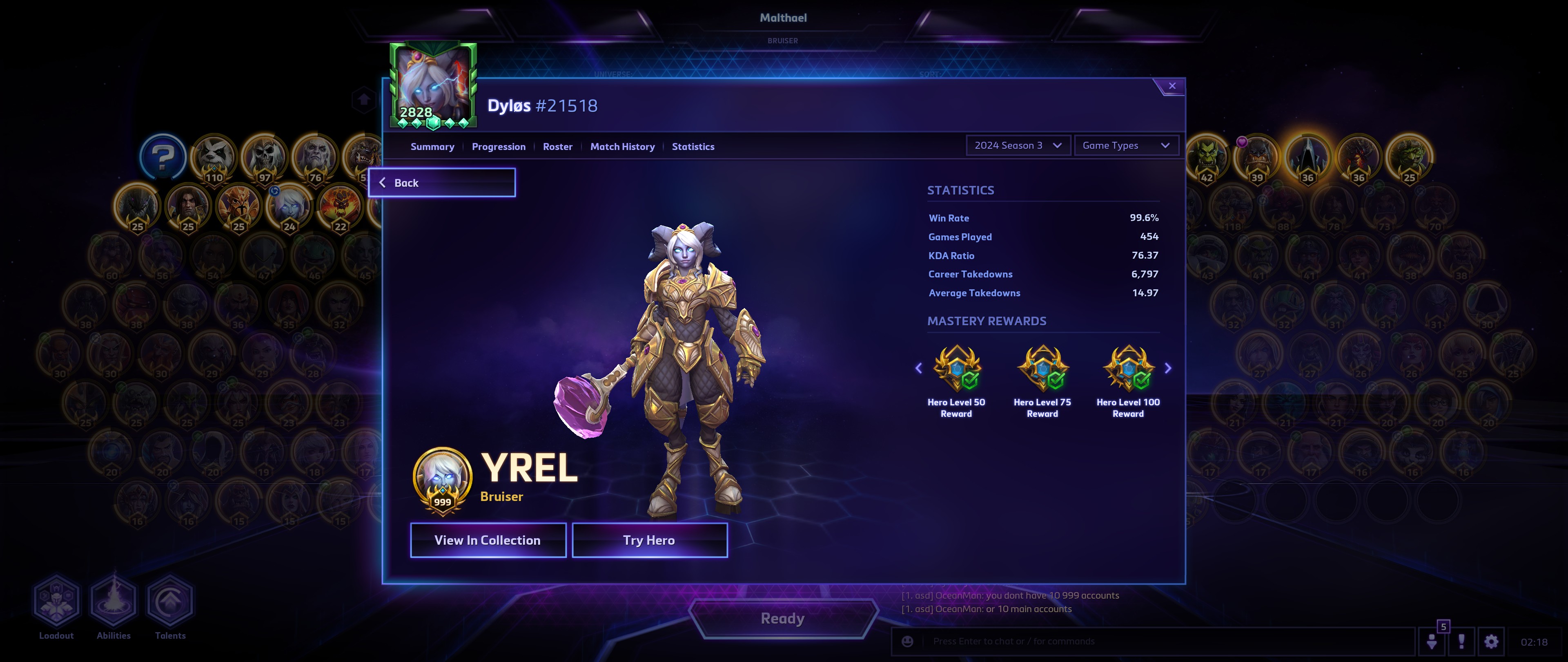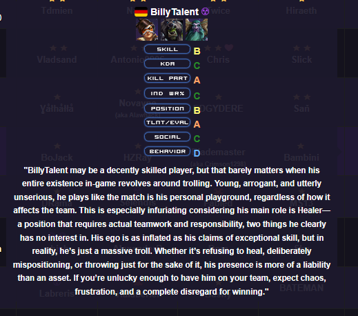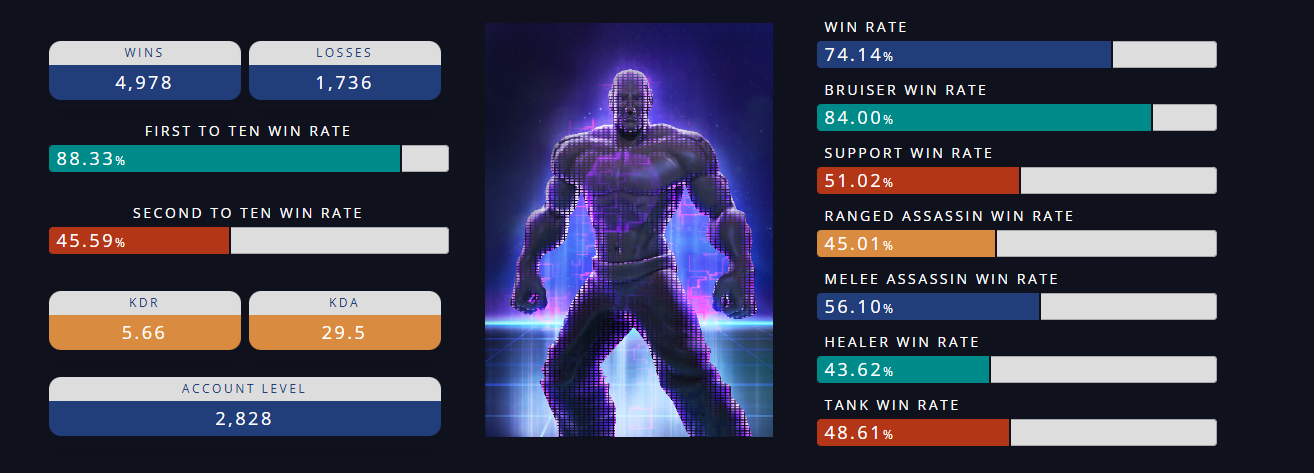 Только хотел разразиться тирадой про мусорную Ирель и худшего брузера в игре, как случайно наткнулся на это чудовище. Я такой мрази в жизни не видел, такой винрейт в квиках даже на самых жестких читах не сделать. И у него почти 20к игр. Естественно, кинул репорт, но кто ж ему пермач даст.