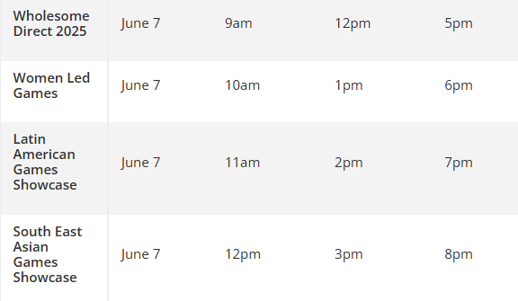 7 июня ⦁ 02:00 МСК. Day of the Devs ⦁ 03:00 МСК. Devolver Direct. BALL x PIT ⦁ 04:00 МСК. IOI Showcase ⦁ 19:00 МСК. Wholesome Direct ⦁ 23:00 МСК. The Future Games Show