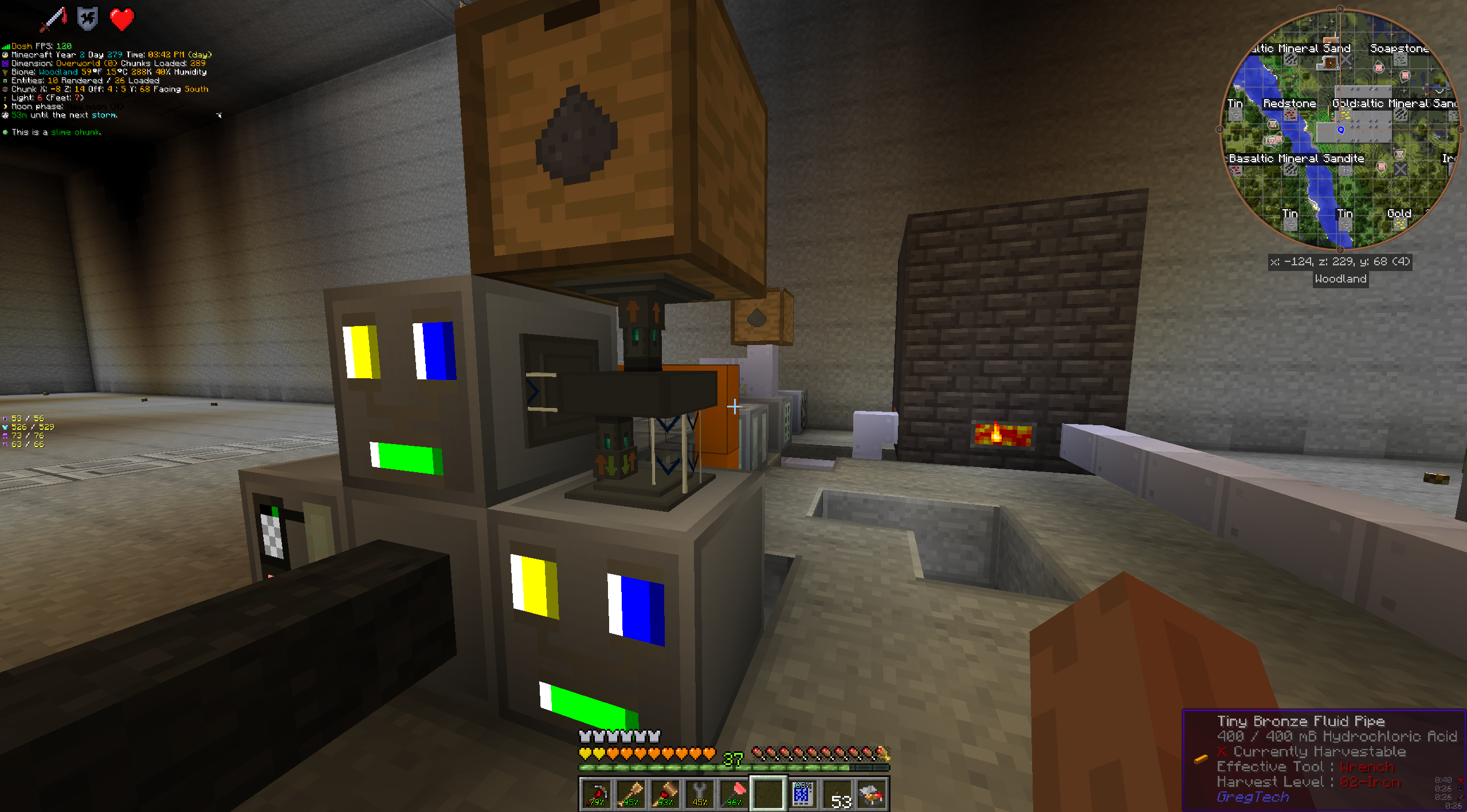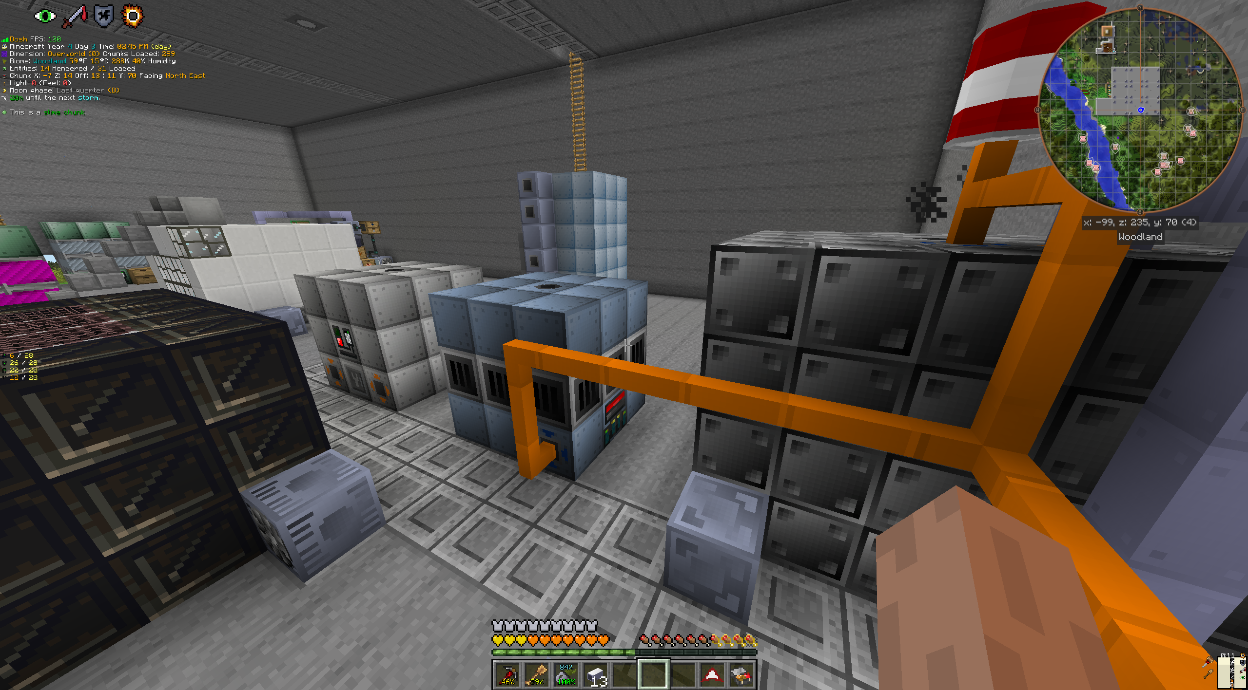 >>614847 Возобновляю игру, дропнул после того как весь день коробку вокруг базы строил. Потихоньку пересаживаюсь в лайт фуела на бензенчик. Этой коксопечки не хватает даже на один хв ампер, надо делать пиролизку но она пердит и видимо её выносить за базу придётся чтоб не задохнуться в полюшене. Бонсаи пока нулевые, селекцией уже занялся вчера как добрался до хв схем и скрафтил сканер. Тростник и всякие рандомные кусты уже поднял до каноник 20-30-10 статов, но мне пока в падлу хуярить переработчики для всего этого. Запилил полянку на глоустоун чтоб капало золото и редстоун.