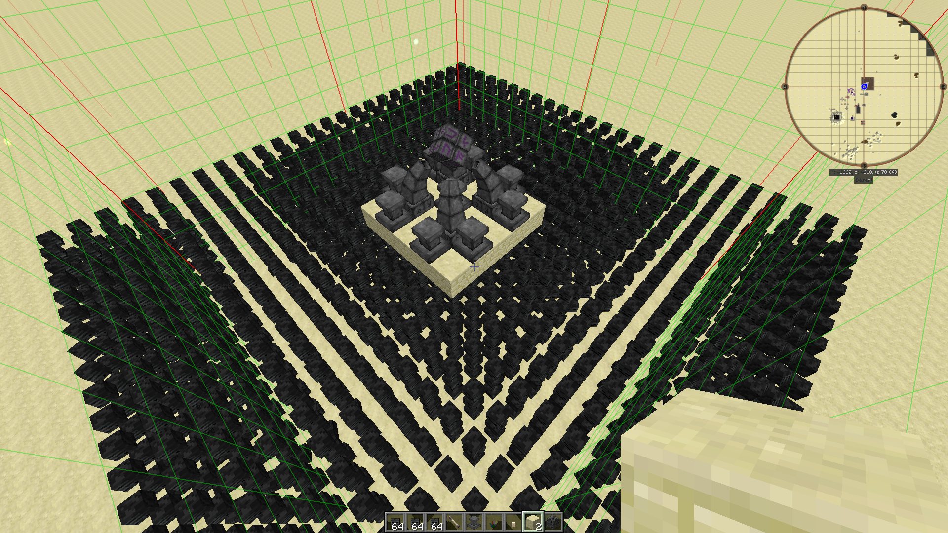>>616131 Да, еще на первой пикче можешь переделать стабилизаторы. Такто стоят симметрично, все ок, но ты их можешь под пол загнать, чтобы место освободить(для труб и прочего). Область видимость у алтаря ебейшая: 25х17х25 от МАТРИЦЫ, и видит он их сквозь блоки. Можно собрать как на пикриле, но это прям оверкилл. Я даже поленился добить слои, но площадь взял максимальную, в теории и одного слоя за глаза хватит. Прямо под матрицей колонну из черепов ставить не нужно, там блоки она все равно не видит.