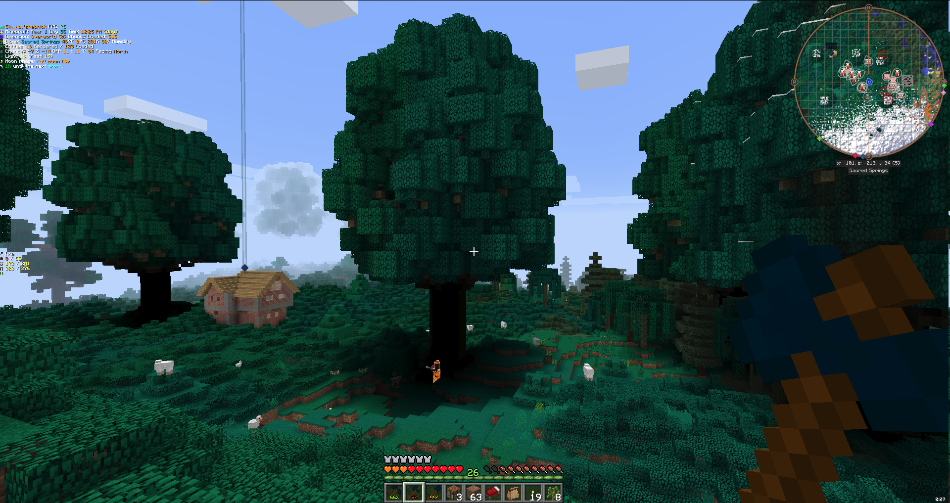 >>615234 Да, я тоже думаю абузить сохранения, хочу попробовать через git коммиты делать. Иначе я такой тревожный сырочек, что если у меня через 100 часов снова что-то бумкнет, то я мало того, что дропну игру, так и почувствую себя очень плохо. Алсо из весёлого - нашел площадку из обсидиана, в середине которой сундук. Там какой-то прикольный лут. Среди прочего - переливающийся молот. Написано мол "легендарный предмет, аналог молота Тора. Не кликай правой кнопкой!". Ну я блядь первым делом кликнул правой кнопкой. Молот просто исчез. Сильно смеялся с этого, я подобные приколы в играх не то что люблю, но всяко уважаю. А, ну и еще. Едва ли не в десятую ночь попал в аномалию, которая подбрасывала в воздух пока не сдохнешь. Из-за этого пришлось дропнуть сохранение, потому что у меня там уже куча лута была найденного, а могила оказалась в самом центре - не достать. Еще пока бродил - нашел висящий в воздухе огонёк, из которого вылетали типа искры, если по нему бить. Пока не понял что это, но наверное из Thaumcraft.
