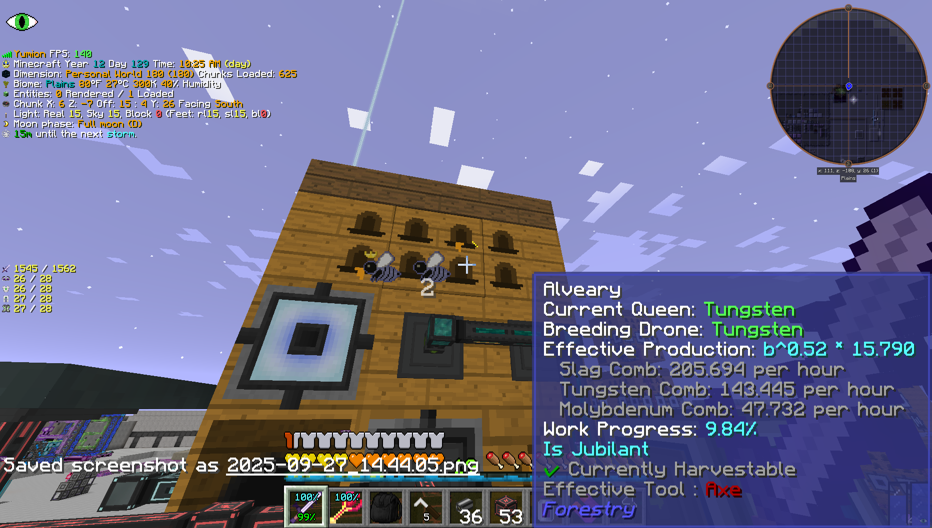 Хотел много что построить, но сперва споткнулся об платы для схем, крафтил 4 стака сразу 10 часов, потом меня посетила идея скрафтить ЛХР, я вспомнил что хлора у меня нет и пошёл выводить тирсталк для слёз гаста. Поэтому по итогам дня завод хлорки и холодильник сделал. Надо ещё заодно гранит высадить для флюриона. А то птфе много придётся делать, а добывается из руд флюриончик вяло.