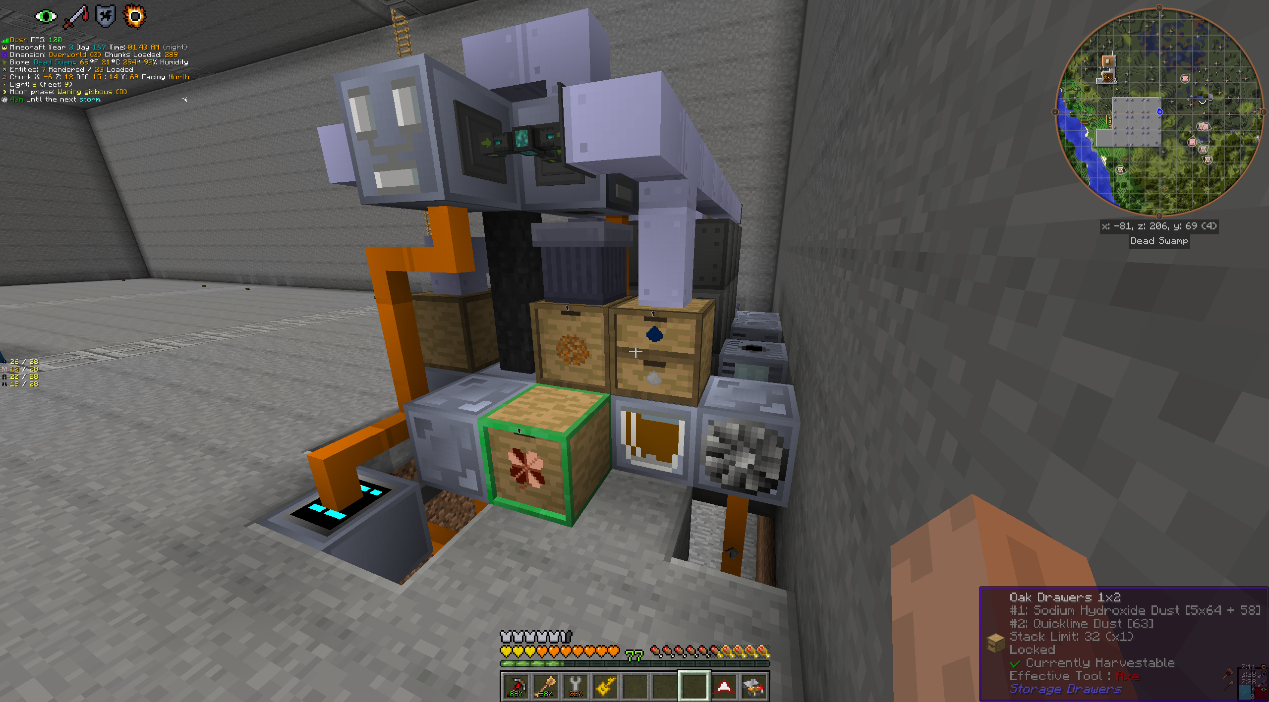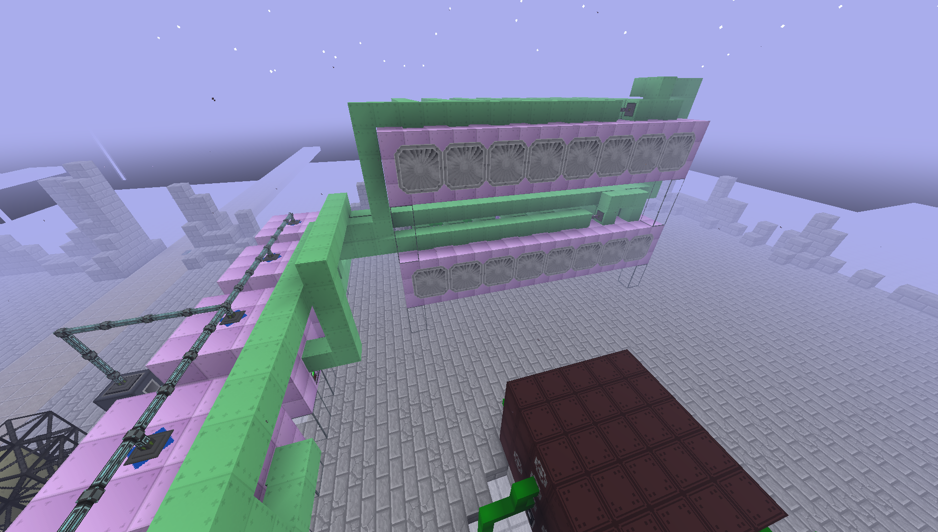 >>616704 Да это так был прототип для примера. Меня больше визуал интересует, нах мне эти мини коробочки, когда мод позволяет йоба-структуры строить? Компенсирую скорость количеством руды для обработки за раз, благо влезает прилично стаков(влезает полное хранилище 2х2х2). На видриле обработка всеми 24 вентиляторами одновременно: нужное количество для наибыстрой обработки(да, скорость вентиляторов не влияет, лишь их количество на область).