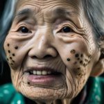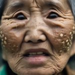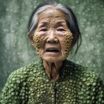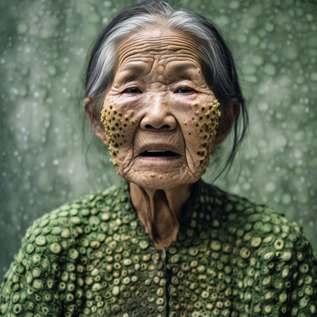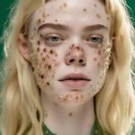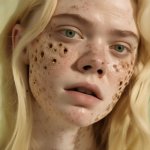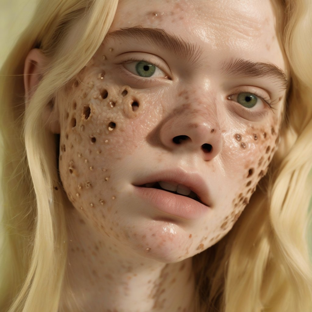 >>321113776 view from below. Extreme close-up of 𝔼𝕝𝕤𝕒 (real-life) in a dark, moody atmosphere—her platinum blonde braid draped over one shoulder, framing her 𝕪𝕠𝕦𝕥𝕙𝕗𝕦𝕝 freckled face with smokey eye makeup. She bent down. From the shadows, a demon's hand is on her shoulder. Key Details: Mouth wide open, a blood liquid dripping from her lips, flowing in a surreal, slow-motion cascade. Bare shoulders glistening under a dim, ambient light source. Vintage 8mm film aesthetic—heavy grain, faded colors, subtle light leaks, and a gritty texture. Sunglasses, adding a cool, rebellious vibe. Expression: A playful smirk, as if she’s savoring the moment. Lighting & Atmosphere: Low-key lighting, with deep shadows and a single soft highlight catching the liquid’s iridescence. Background: Pure darkness, making her face and the rainbow liquid the sole focus. The outline of a demon and black horns are visible behind. Film imperfections: Scratches, dust, and a slight vignette for an authentic vintage feel. Style: Ultra-realistic yet dreamy, blending hyper-detailed facial features with the surreal rainbow effect. Color palette: Moody blues and purples, contrasted by the vibrant rainbow hues. Cinematic depth, shallow focus on her lips and eyes.GoPro with extremely distorted panorama lens view with extreme facial focus close-up. 35mm film