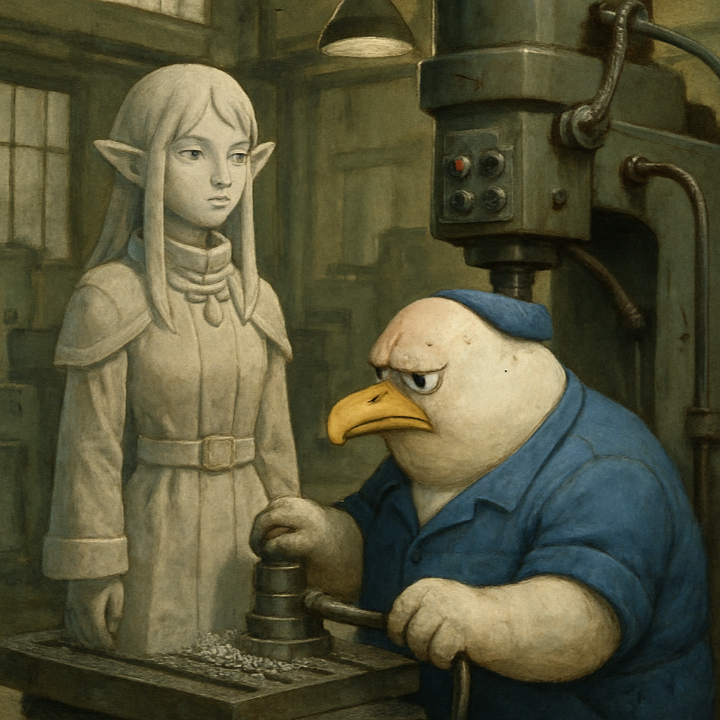 ЗАВОД-КУН СОЗДАЕТ ЛОРУ ПО МОТИВАМ СВОЕГО ЗАВОДА @ ФОТОГРАФИРУЕТ ЦЕХА, СТАНКИ, ТРУБЫ @ ТРЕНИРУЕТ МОДЕЛЬ @ ПОЛУЧАЕТСЯ ОХУЕННО @ ГЕНЕРИТ КАРТИНКИ: "CYBERPUNK FACTORY, NEON LIGHTS" @ ЕГО СЕРЫЙ ЗАВОД ПРЕВРАЩАЕТСЯ В ФУТУРИСТИЧЕСКИЙ КОМПЛЕКС @ РЖАВЫЕ ТРУБЫ СВЕТЯТСЯ НЕОНОМ @ РАБОЧИЕ ВЫГЛЯДЯТ КАК ГЕРОИ ФАНТАСТИКИ @ ВЫКЛАДЫВАЕТ НА CIVITAI @ ОПИСАНИЕ: "INDUSTRIAL COMPLEX LORA - DYSTOPIAN FUTURE" @ СКАЧИВАЮТ 50 ЧЕЛОВЕК @ В КОММЕНТАХ: "COOL AESTHETIC BRO" @ ЗАВОД-КУН ПОНИМАЕТ @ ЧТО ВПЕРВЫЕ В ЖИЗНИ ЕГО РАБОТА КОМУ-ТО ПОНРАВИЛАСЬ @ ДАЖЕ ЕСЛИ ЭТО НЕ СОВСЕМ ЕГО РАБОТА @ А РАБОТА НЕЙРОНКИ @ ОБУЧЕННОЙ НА ЕГО РАБОТЕ