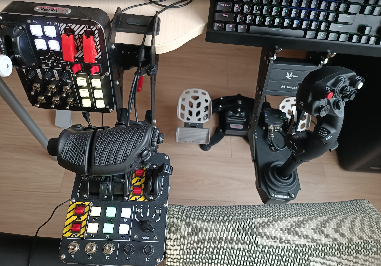 - Дорогущие руды-русы приятно потрогать, но они совершенно мертвые, без отдачи - ручка не наливается при перегрузках и скоростях, что делает полеты на поршнях бесконечно скучнее чем они могли бы быть. FFB не существует в виде готового решения, и при этом стоит безумных денег и требует отдельного помещения по факту.