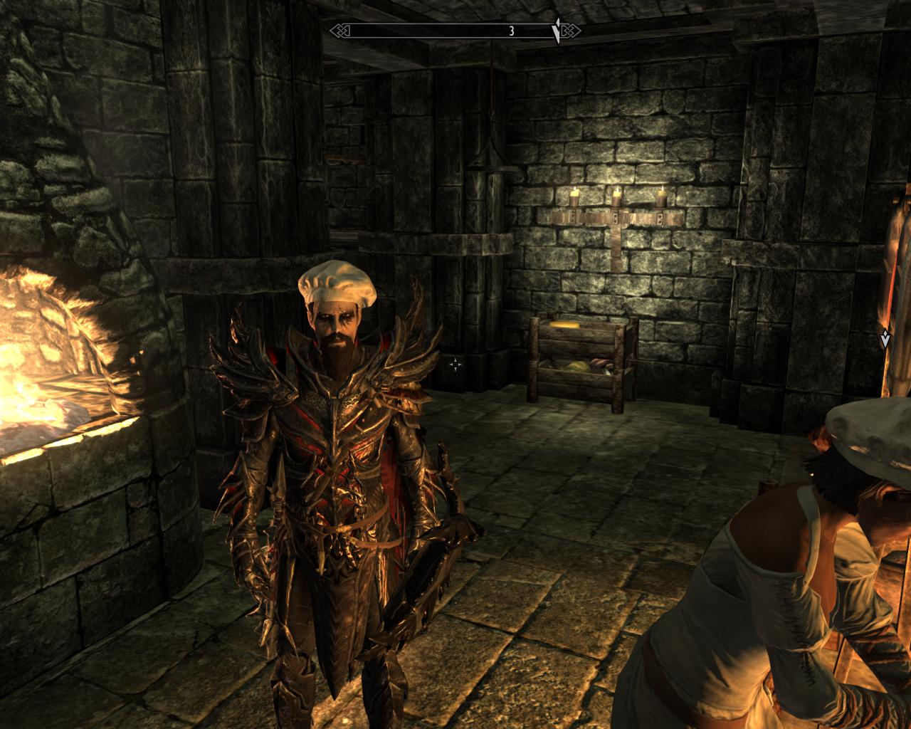 Суровый скайримский повар варит суп из пальцев великана.