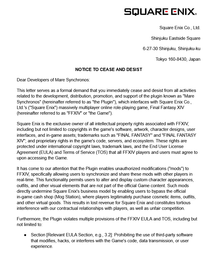 >>50137469 >Such mods directly undermine Square Enix's business model by enabling users to bypass the official in-game cash shop >This results in lost revenue for Square Enix Всё как я и написал. Только теперь свинэникс потеряют ещё больше на подписках. Видимо в макакоублюдии набрали зумерков в маркетолуховый отдел, те подсчитали потенциальный проеб на шопе и не сравнили с потенциальным проебом на подписках и будущих длц при уничтожении клипота траноидов.